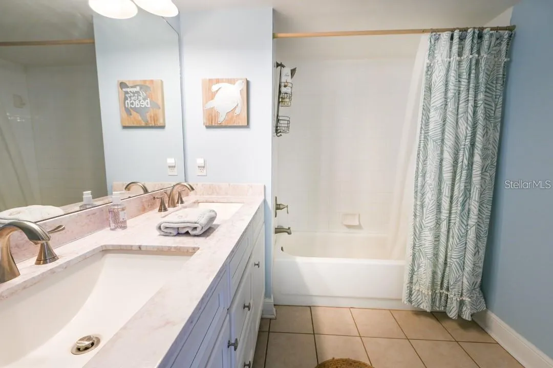 Beautifully updated 3 bedroom and 2 bath condo. This is the perfect beach getaway or income producing rental property, turn key and fully furnished(All Furnishings/Decorations Convey). The unit has an open kitchen/dining/living space with a split bedroom floor plan. Porcelain tile is laid throughout the living areas and there is tile in all bedrooms. The kitchen is fully updated with white shaker cabinets, soft close drawers/cabinets, and KitchenAid appliances along with quartz countertops. The Master Bedroom features an en-suite bathroom with dual sinks and walk-in closet. There is a view of the Gulf from the Master along with a door that leads out to the balcony. The 2nd bathroom has a walk-in shower to accompany the other 2 large bedrooms. This unit also offers a full-size washer/dryer w/ additional storage behind the coastal chic barn door. Beach Palms is located on the gorgeous Indian Shores Beach. It is conveniently located by Park Blvd bridge with easy access to groceries, shops, pubs, and boutiques. The complex offers a heated saltwater pool overlooking the beach. There are gas grills and showers/restrooms available as well. HOA includes: Common Area Taxes, Escrow Reserves Fund, Insurance, Maintenance Exterior, Landscaping, Maintenance Grounds, Manager, Pest Control, Pool Maintenance, Sprinkler system (inside condo) maintained by condo association, garbage/waste, and water provided. Units can be rented weekly, monthly or annually.