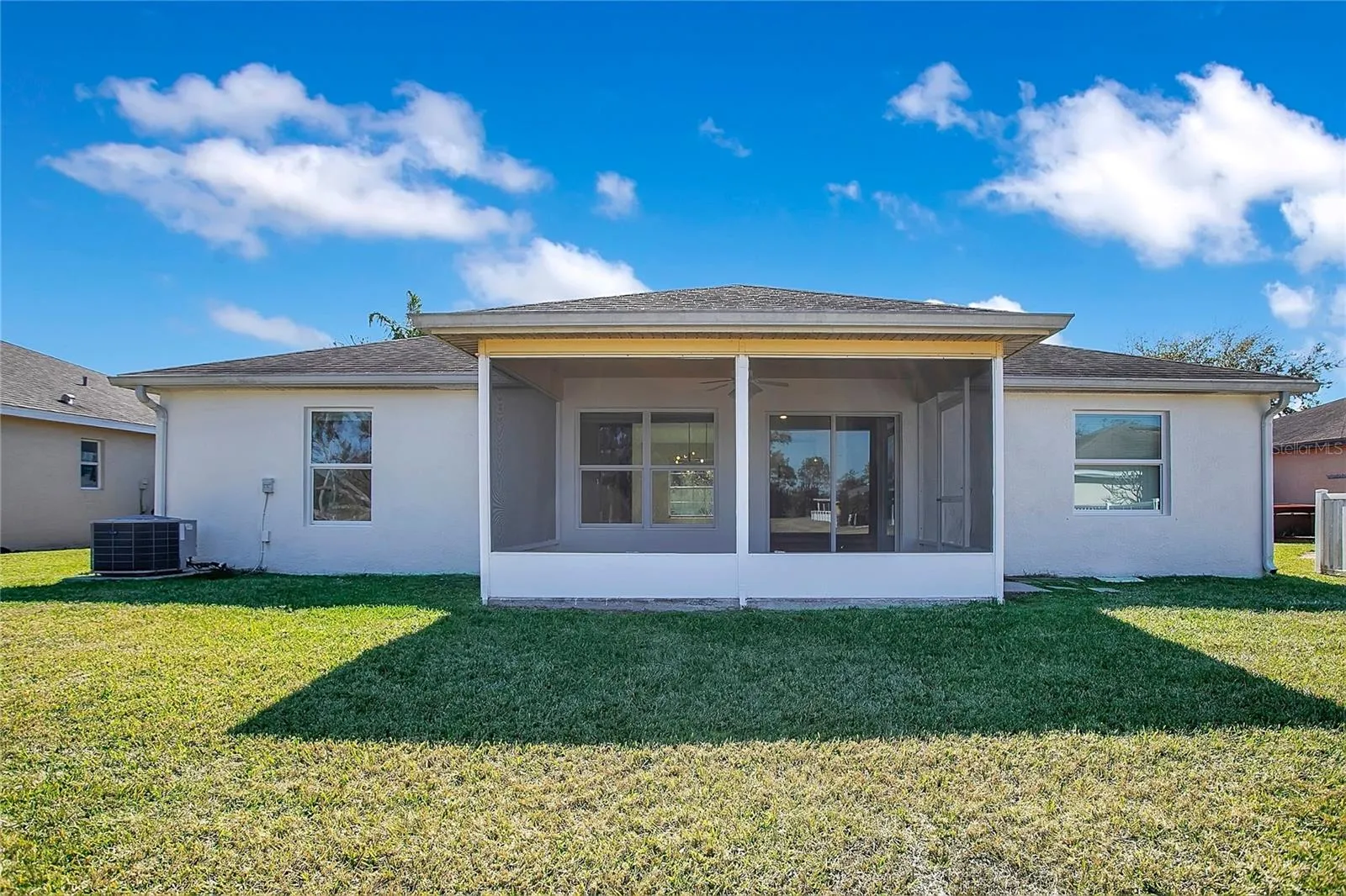 Step inside to soaring cathedral ceilings and a bright, open floor plan featuring brand new luxury vinyl plank flooring throughout, fresh interior and exterior paint, updated lighting fixtures, and a fully renovated kitchen with quartz countertops, new stainless steel appliances, and plenty of cabinet space. Enjoy morning coffee or unwind in the evening from the screened lanai overlooking the peaceful pond – a perfect indoor/outdoor Florida living space. Hurricane shutters are included for added protection and peace of mind.
