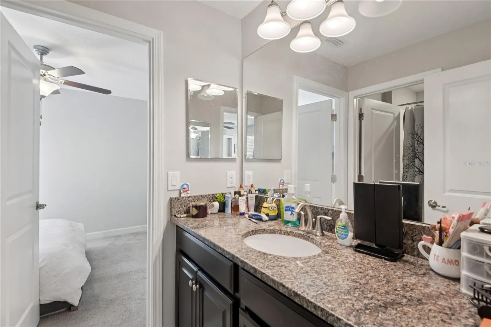Located in the desirable Union Park community, this 2,471 sq. ft. home offers 5 bedrooms, 3.5 baths, a loft, and a 2-car garage. The primary bedroom is located on the first floor, with four additional bedrooms and a spacious loft upstairs. The open-concept layout features a kitchen overlooking the main living area, complete with granite countertops, a large island, stainless steel appliances, and wood cabinetry. Tile flooring runs throughout the first floor living areas.Additional features include a screened lanai, fenced backyard, separate living room with French doors and a wet bar sink, LED lighting, and a conveniently located laundry room near the primary suite.Union Park amenities include a clubhouse, resort-style pools, splash pad, fitness center, sports courts, playgrounds, walking trails, and green spaces. Conveniently located near top-rated schools, Wiregrass Mall, Tampa Premium Outlets, USF, Moffitt Cancer Center, and major highways including I-75 and I-275.Information provided is deemed reliable but not guaranteed. Buyer is responsible for verifying all facts, including square footage, measurements, permits, HOA requirements and community amenities.