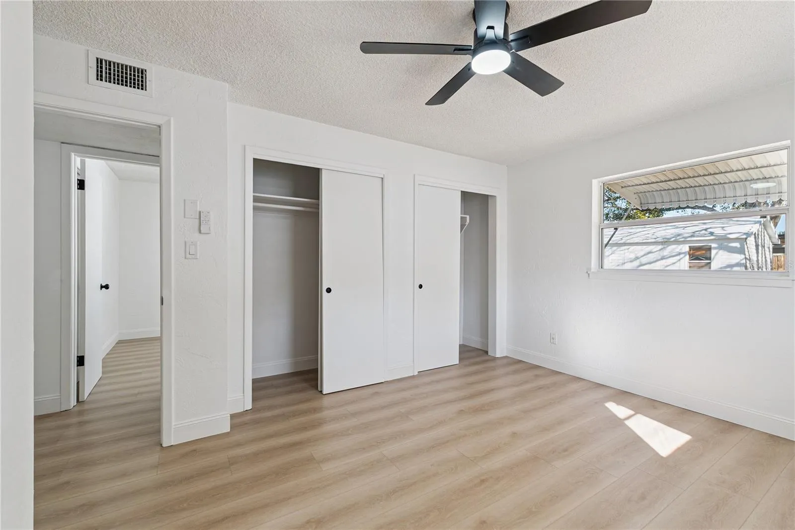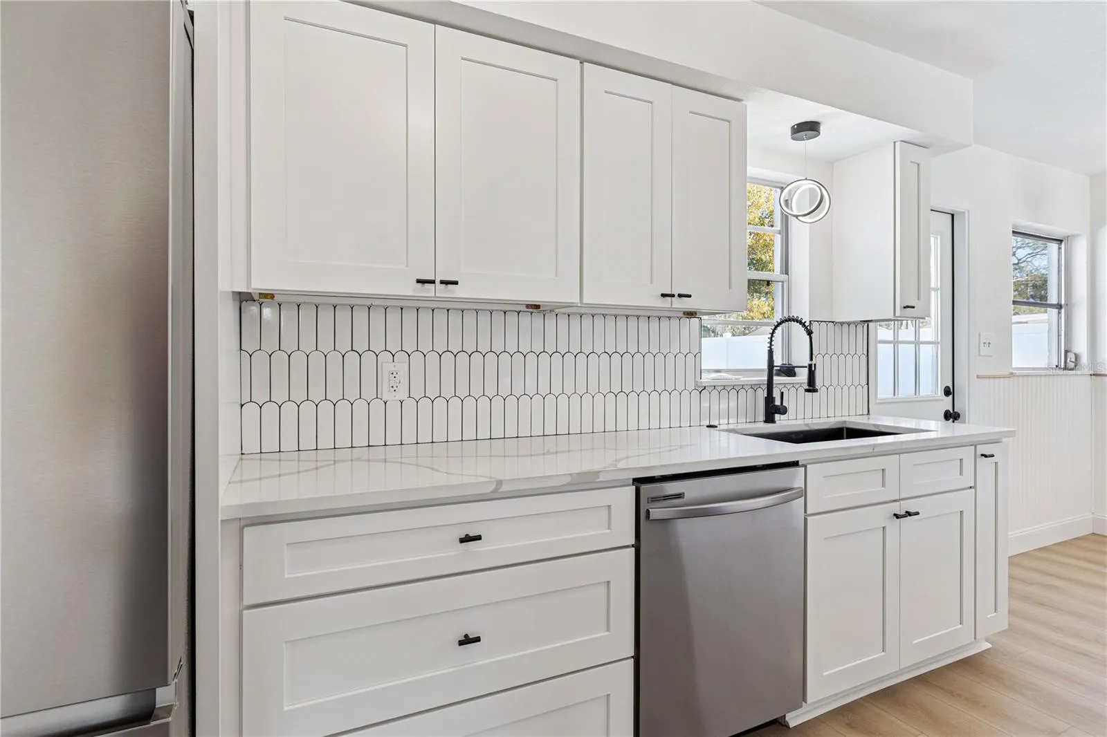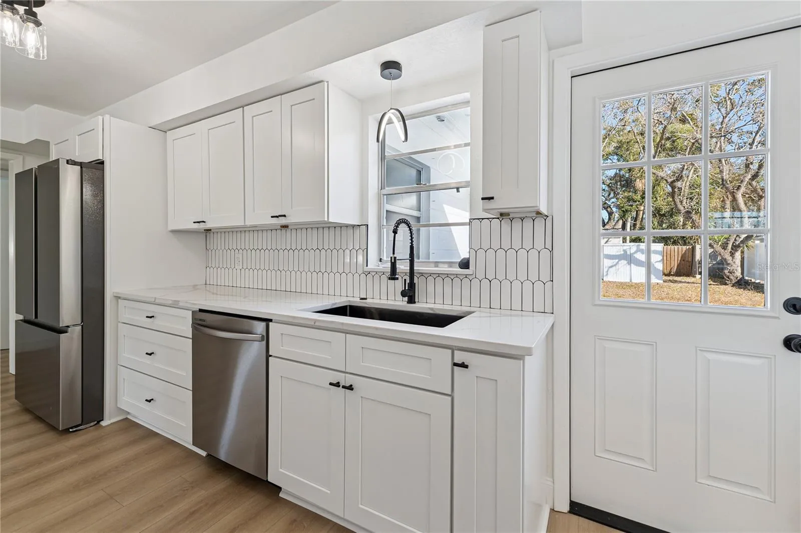 Major updates include a new roof, new HVAC system, and fresh interior and exterior paint, luxury vinyl flooring, black matte hardware, white shaker cabinets, and appliances.