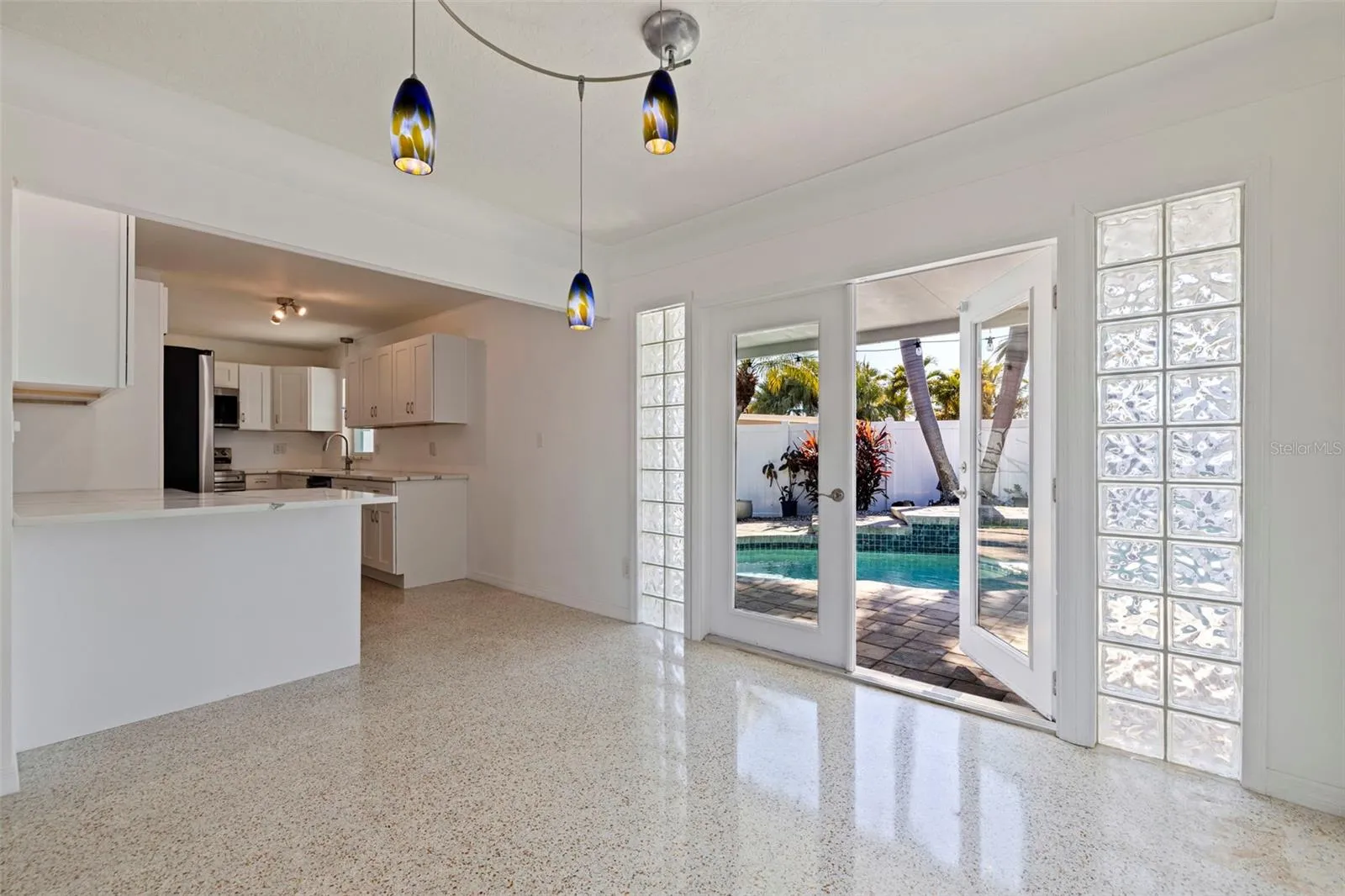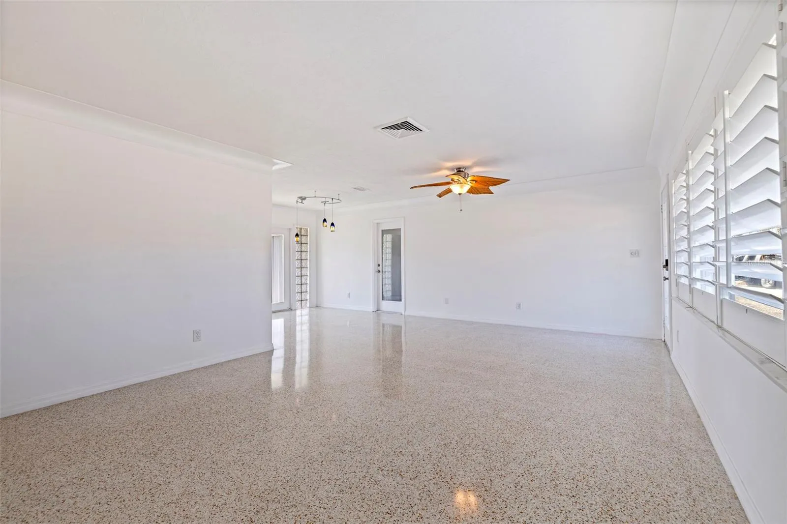 From the moment you arrive, the home’s curb appeal shines, complemented by tropical landscaping, classic Bahama shutters, and vinyl fencing. As you enter through the Leaded glass front door, you’ll find approximately 1,100 square feet of inviting living space featuring cove ceilings, glistening terrazzo floors throughout, and a beautifully updated bathroom with a quartz countertop.