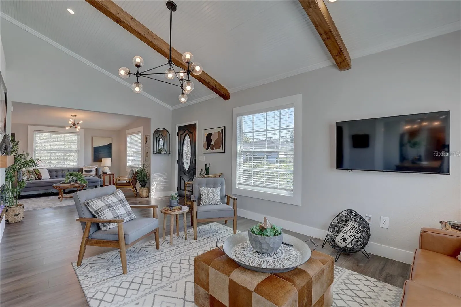 Inside this split floor plan home, you get the perfect blend of character and modern design. Vaulted ceilings. Exposed beams. A bright, open living space anchored by a sleek electric fireplace. Every finish has been thoughtfully updated while preserving the charm of the original build.