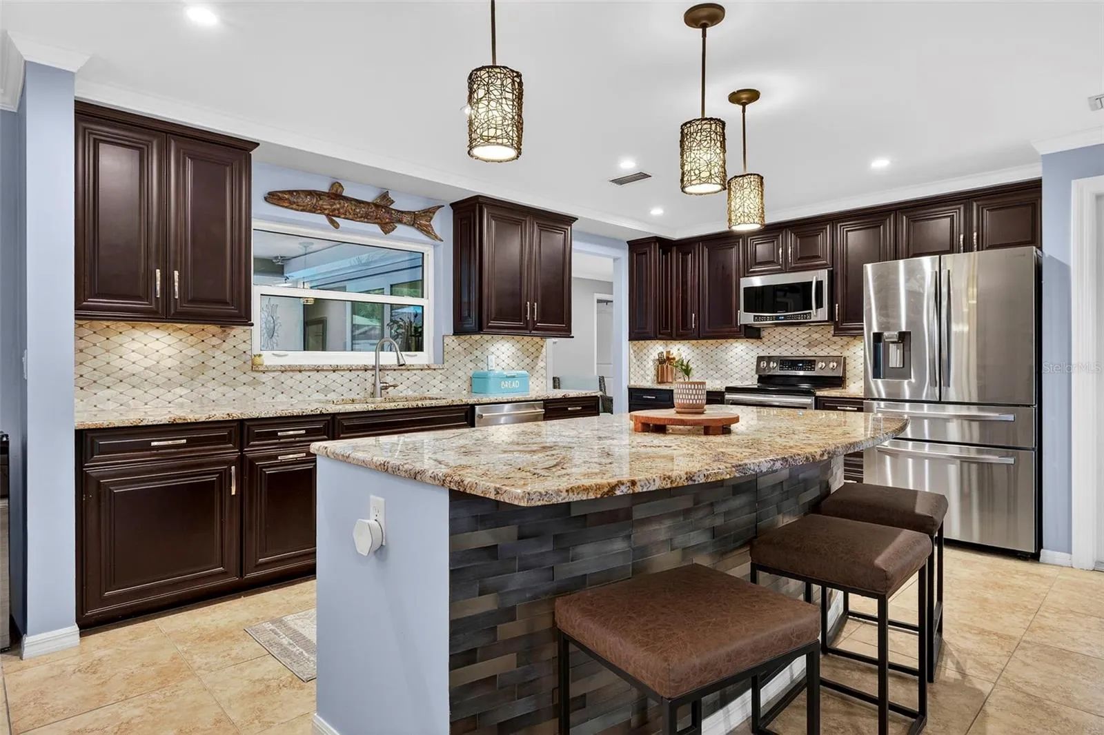 This meticulously manicured pool home showcases incredible curb appeal from the moment you arrive and continues to impress inside with an open split floor plan designed for both comfortable daily living and effortless entertaining. The spacious kitchen sits at the center of the home and features a large floating island ideal for casual dining and gathering with family and friends. There is an abundance of cabinetry, solid surface countertops, and stainless steel appliances. The primary suite offers a beautifully updated en suite bath with double sink vanity, a generous walk-in closet, and dedicated vanity area. Sliding glass doors lead to the screened lanai that overlooks your private outdoor oasis complete with an oversized swimming pool, a firepit, and an inviting entertaining/grilling area all surrounded by a privacy fence and lush landscaping. Two guest bedrooms, a versatile den, and an indoor laundry room provide flexible living space to fit a variety of needs. Additional features include newer impact-rated windows, a newer tile roof, a two-car garage, HIGH AND DRY location with NO FLOOD INSURANCE required. Ideally located near Seminole City Center, you’ll enjoy easy access to shopping, restaurants, entertainment, and everyday conveniences, making this home not only beautiful but perfectly positioned to enjoy the best of the Seminole lifestyle. This is the complete Florida lifestyle package—beautiful home, prime location, and effortless access to everything that makes living in Seminole so special.