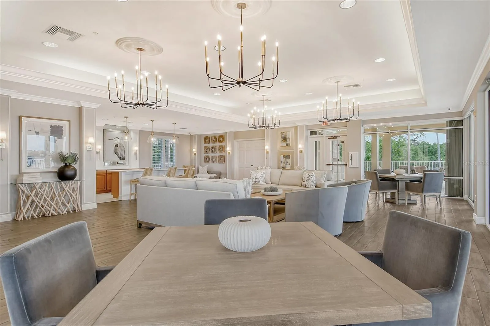 A private oversized 2-car garage provides direct access to the secured lobby, where a semi-private elevator brings you to the third floor. Step into your private foyer and through double entry doors to discover an immaculately maintained 2,376-square-foot home with stunning lake views. Expansive windows, sliding doors, and a generous screened terrace fill the spacious great room and elegant dining room—complete with natural light.