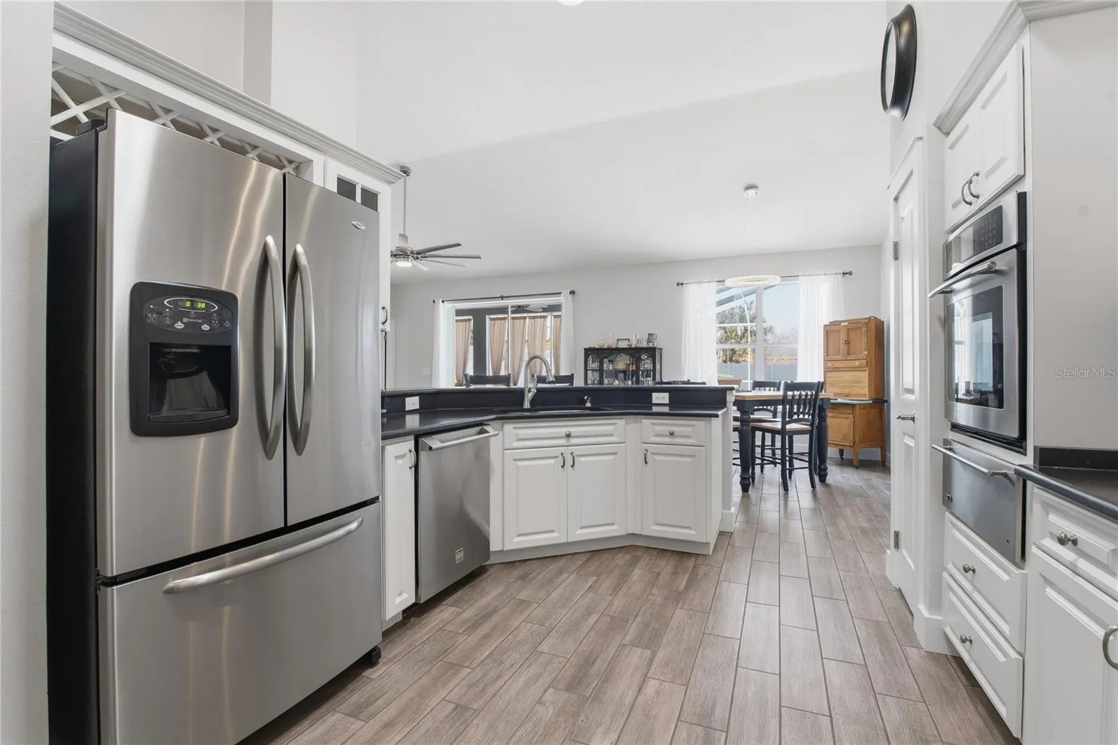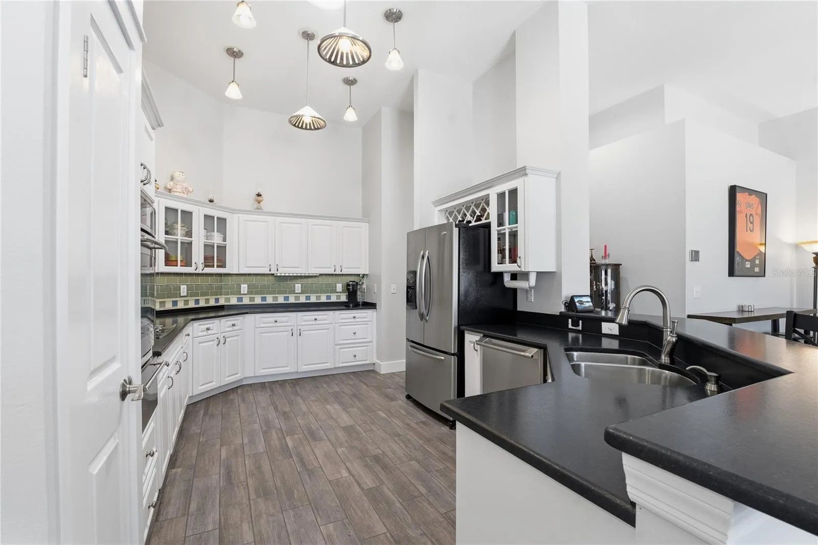 Welcome to this stunning 4-bedroom, 3-bath pool home with a dedicated office/den, located in Canterbury Glen, a highly coveted Odessa community. Featuring a newer roof (2022) and a freshly painted interior, this home is situated on a fully fenced oversized lot, this home offers exceptional outdoor living with a large pool, expansive covered patio, and generous yard space, perfect for entertaining or everyday enjoyment. The pool is equipped with a newer variable speed pool pump (2022). Inside, French doors open to a spacious office/den, ideal for working from home or a private retreat. The formal living room impresses with lofted ceilings, creating a bright and airy atmosphere. The home then flows seamlessly into a beautiful open-concept layout featuring a large family room, dining area, and gourmet kitchen, designed for effortless entertaining. The kitchen showcases granite countertops, stainless steel appliances, and elegant 42” shaker-style cabinetry, while much of the living space is enhanced by brand-new wood-plank tile flooring. A desirable split-bedroom floor plan includes two primary suites. The main primary suite features sliding glass doors leading to the pool area, a custom walk-in closet, and a luxurious en-suite bathroom with dual vanities, granite countertops, a soaking tub, and a frameless glass shower. The second primary bedroom also offers a private en-suite bath, ideal for guests or multigenerational living. The dream backyard includes a large covered patio, a spacious fenced yard, a storage shed (with power), and a sparkling pool, perfect for entertaining or family fun. Zoned for A-rated schools, conveniently located near the Veterans Expressway, shopping, dining, parks, and playgrounds. Low HOA and no CDD. Schedule your private showing today!