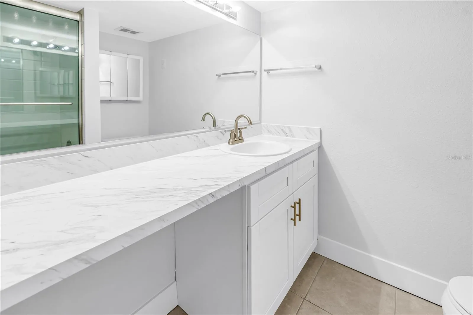 The brand-new kitchen stands out with crisp white cabinetry, elegant countertops, and stainless steel appliances. Both bathrooms have been thoughtfully remodeled with clean, modern finishes. The open layout connects the kitchen, dining, and living areas, creating a bright, welcoming space that’s perfect for everyday living or hosting guests.