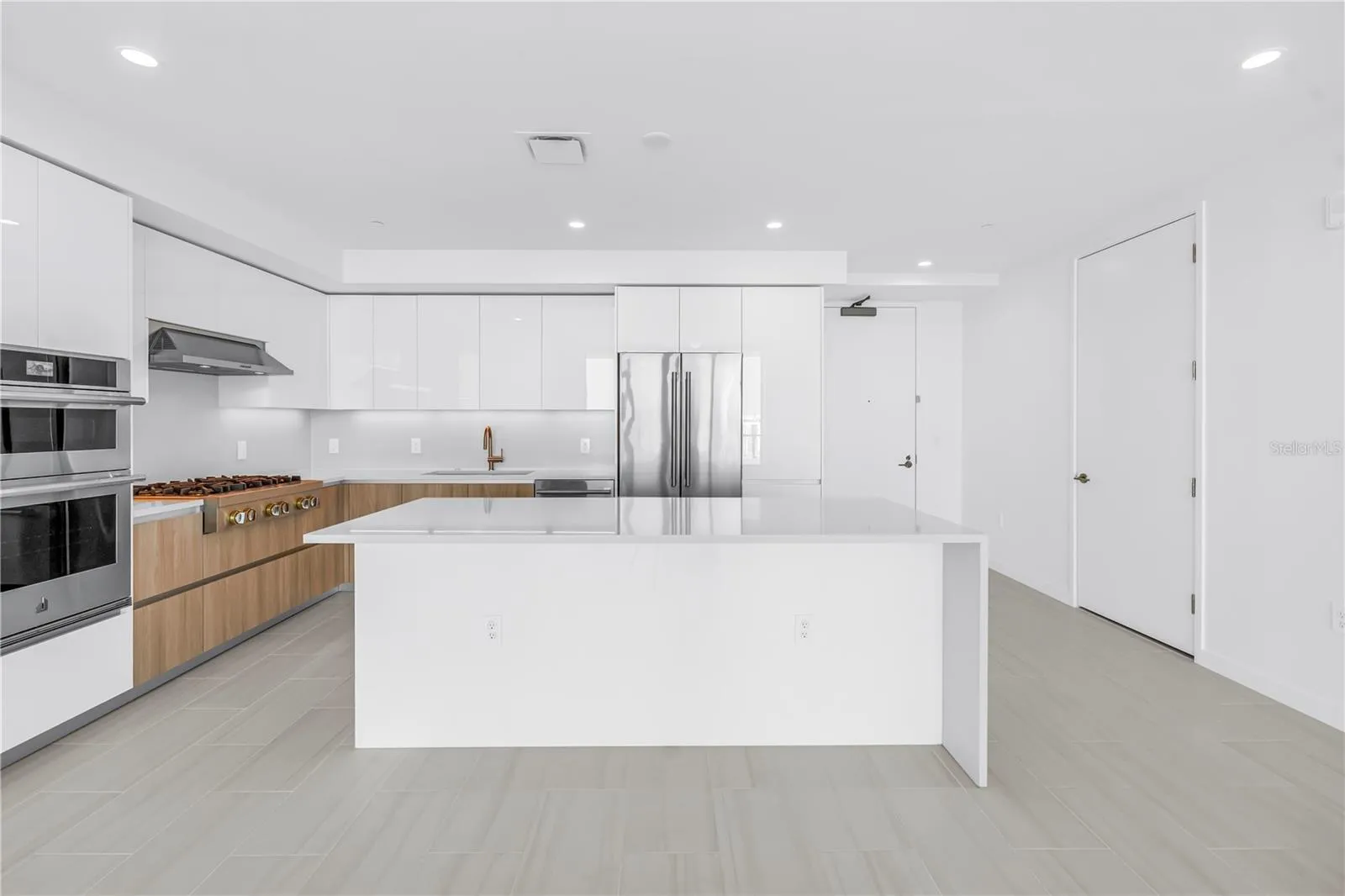 The modern kitchen is beautifully appointed with premium appliances including a gas range, quartz countertops, and sleek cabinetry, while the spacious primary suite offers a spa-inspired bath and generous custom closet space. Residents enjoy access to 400 Central’s resort-style amenities, including a rooftop pool and spa, fitness center, resident lounges, and concierge services.