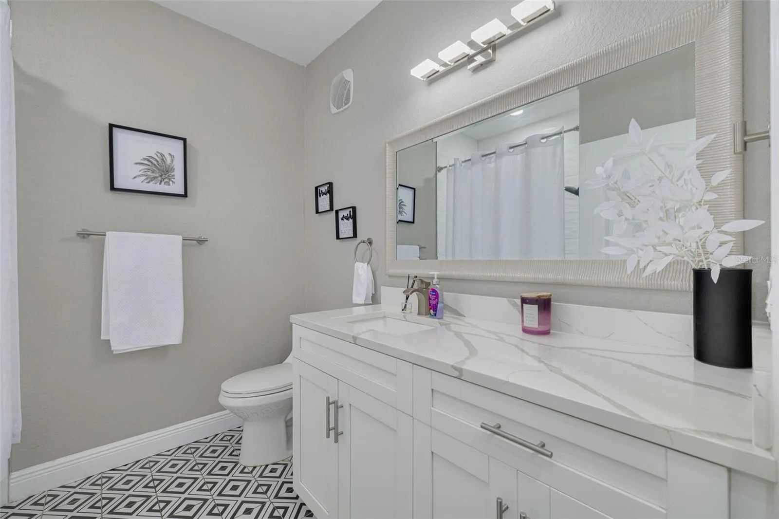 Welcome to upscale coastal living at its finest in the desirable, gated Grand Bellagio community. This beautifully updated 2-bedroom, 2-bathroom condo with a den offers a perfect blend of style, comfort, and resort-style amenities – all just minutes from Tampa Bay’s world-renowned beaches and airports. Step inside to find luxury vinyl plank flooring throughout, elegant tray ceilings in the living room, and a bright, open layout perfect for entertaining. The contemporary kitchen boasts shaker-style cabinetry, quartz countertops, a breakfast nook, and a spacious dining area – ideal for casual meals or formal gatherings. Unwind in your spacious primary suite featuring a custom walk-in closet, spa-like bathroom with soaking tub, separate shower, and dual vanities. The private balcony offers a serene spot to enjoy your morning coffee or evening breeze. Additional features include an in-unit laundry room, Storage Closet #48, and recent community-wide updates: new tile roof, fresh exterior paint, new stucco, hurricane impact windows and sliders, new asphalt driveways, and lush landscaping—all completed within the past year. Enjoy the many resort-style amenities including: a heated waterfront pool, spa & sauna, 1.5-mile lighted waterfront walking path, 24/7 state-of-the-art fitness center, tennis courts, playground, dog run, and scenic gazebo overlooking Tampa Bay. There are even boat docks available for rent or purchase. No short-term rentals allowed, ensuring a peaceful residential environment. HOA includes Xumo cable, high-speed internet, multiple sports boxes, and trash valet. Just a short drive to shopping, dining, entertainment, and both Tampa International and Clearwater-St. Pete Airports. Don’t miss your opportunity to own a slice of paradise in one of Clearwater’s premier waterfront communities!