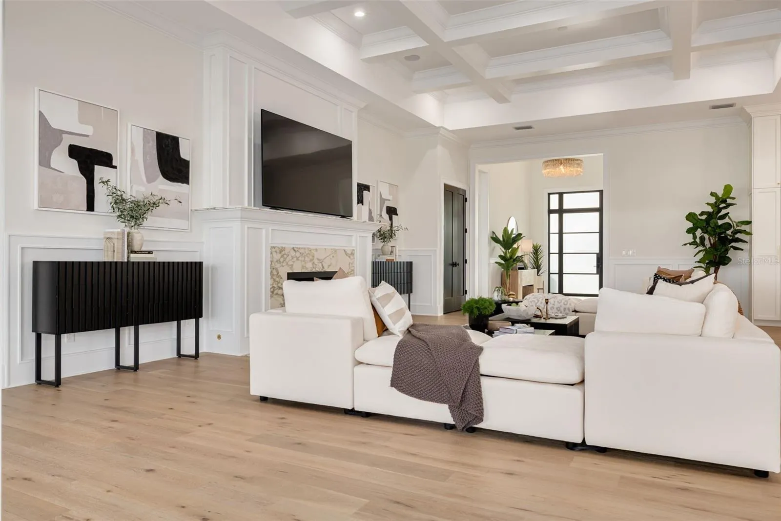 - Ceiling Fans(s), Crown Molding, Open Floorplan, Walk-In Closet(s), Eat-in Kitchen, Primary Bedroom Main Floor, Split Bedroom, High Ceilings, Stone Counters, Solid Wood Cabinets, Coffered Ceiling(s)