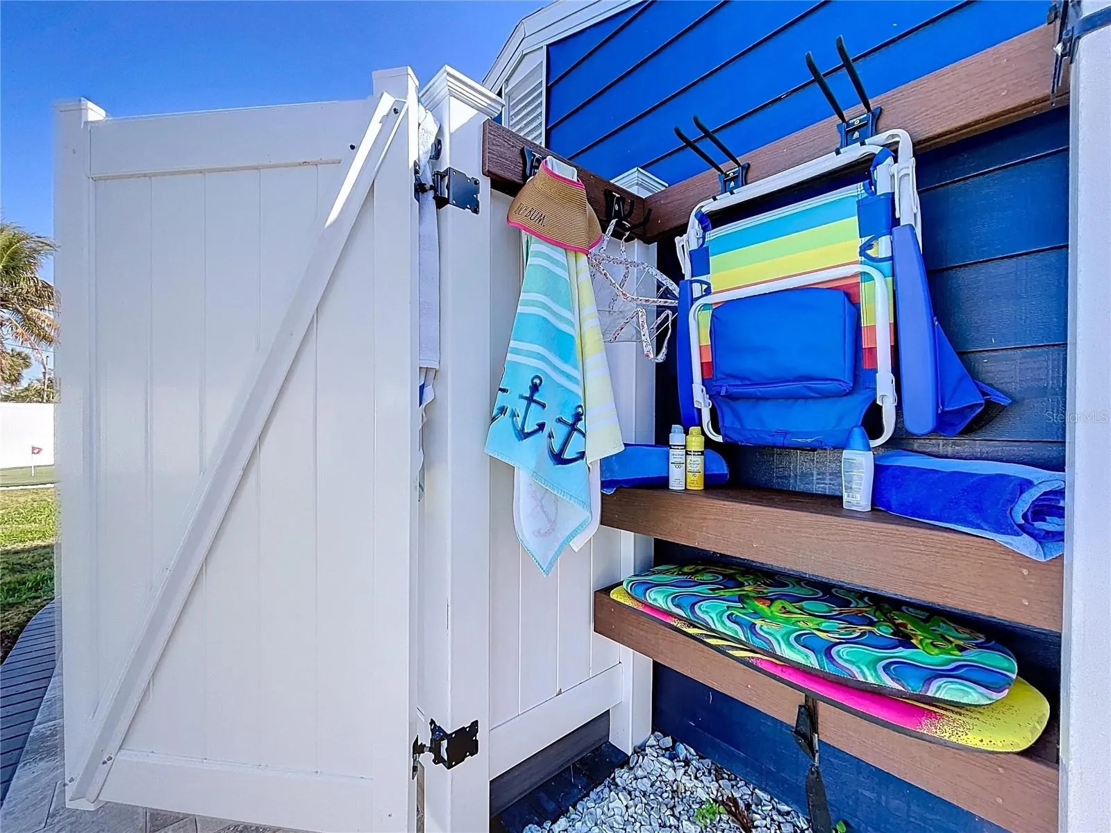 - Lighting, Storage, Private Mailbox, Rain Gutters, Other, Outdoor Shower, Private Yard, Private Entrance, Permeable Paving