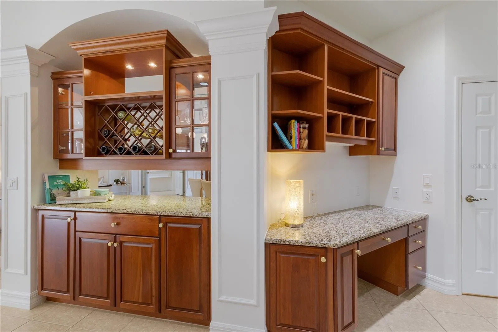 Discover a classic waterfront retreat where tradition harmonizes with a refined modern aesthetic. Poised gracefully on a lake in Lakewood Ranch Country Club, this impeccably maintained 3-bed/3-bath residence is the perfect blend of enduring craftsmanship and elevated contemporary style. Offering 2,478 sqft of thoughtfully curated living space, this home captures the essence of calming luxury with classic character. From the moment you arrive, the lush, artfully layered landscaping, paver walkways, and precision curb-it edging create a polished and welcoming first impression. A brand-new tile roof crowns the home, while an $18k full interior paint refresh provides a crisp backdrop to complement your furnishings. Once inside, timeless design elements take center stage. Modern fans and lighting accented by coffered ceilings add depth and dimension, while intricate crown and trim molding, warm wood cabinetry, stately pillars and graceful arches create architectural rhythm. Sunlight reflects across the warm finishes, highlighting the seamless flow between living, dining, and gathering spaces. At the heart of the home, the open kitchen serves as a welcoming gathering space where everyday moments and special occasions naturally unfold. Rich cherry wood cabinetry with soft under cabinet lighting is highlighted by granite counters, an integrated desk with shelving, a and top-tier appliances. Tucked away from the two guest bedrooms, the owner’s suite is serene and spacious, thoughtfully positioned for both privacy and comfort within the home’s desirable split floor plan. This tranquil sanctuary offers a true sense of seclusion while still maintaining effortless flow to the main living areas with private lanai/pool access. A spacious, private home office provides an inspiring work-from-home environment or executive retreat. The sliding glass wall and expansive windows in the family room draw your gaze outside to a truly enchanting Florida living experience. The heated pool with cascading waterfalls and spa creates a resort-inspired mood, all set against a picturesque lake view. The expansive screened lanai creates elevated entertaining options, featuring an extended 12′ bar complete with an outdoor grilling kitchen with granite counters. To complete the space, generous seating areas with retractable awnings offer effortless shade and comfort. Lakewood Ranch Country Club has optional golf and social memberships providing you with resort-style living year-round. Amenities include 3 luxurious clubhouses, 4 golf courses, 18 lighted Har-Tru tennis courts, pickleball courts, a state-of-the-art fitness center, and an aquatic center. Enjoy the convenience of being just minutes from UTC Mall, fabulous dining at Lakewood Ranch Main Street and Waterside Place, The Polo fields, Benderson Park and the new Mote Marine Aquarium. This incredible home is a short drive to Sarasota’s downtown arts & cultural districts and our award-winning, pristine Gulf Coast beaches. This home is move-in ready, so why not place this home at the top of your showing list? Your buyers will not be disappointed. Call us today for your private showing!