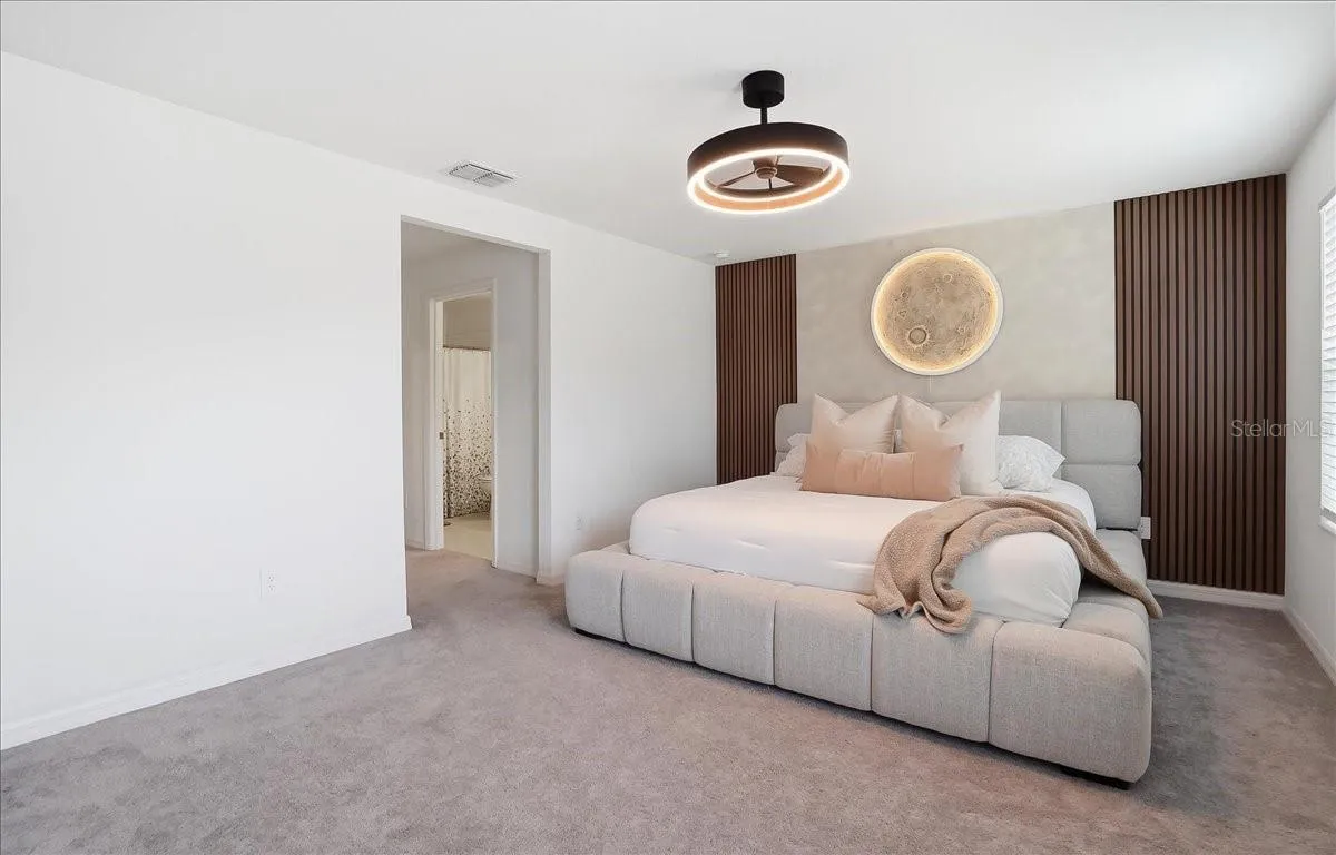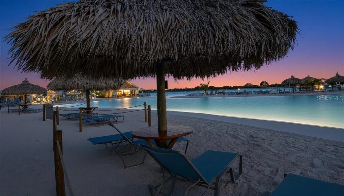 Experience refined, resort inspired living in the desired Mirada lagoon community. Built in 2024, this impeccably designed open concept townhome blends modern design with custom luxury finishes throughout. Featuring statement wood slat accent walls, ceiling fixtures, and a thoughtfully curated neutral palette, the home offers a true model like presentation. The spacious primary suite showcases a dramatic backlit feature wall and tranquil landscaping views, while the upgraded powder room delivers a sleek, neutral inspired feel. Enjoy added privacy with no rear neighbors and unwind on the screened lanai overlooking lush greenery. Residents enjoy exclusive access to Mirada’s breathtaking 15-acre crystal lagoon, complete with sandy beaches, waterfront recreation, and resort-style amenities — delivering an elevated lifestyle that feels like a private vacation retreat.