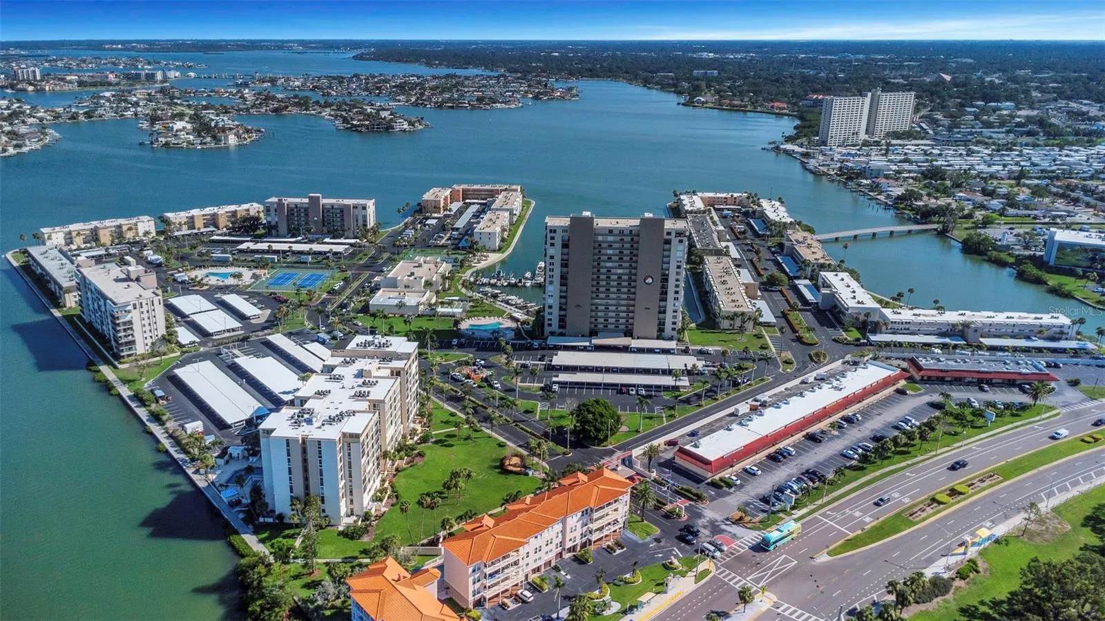 - Head west on Pasadena Ave S, then turn right onto Sun Island Dr S. Continue and make another right onto Bay Island Dr S. After passing through the guard gate, the Admiral Building will be directly ahead, it's the tallest building in the community.