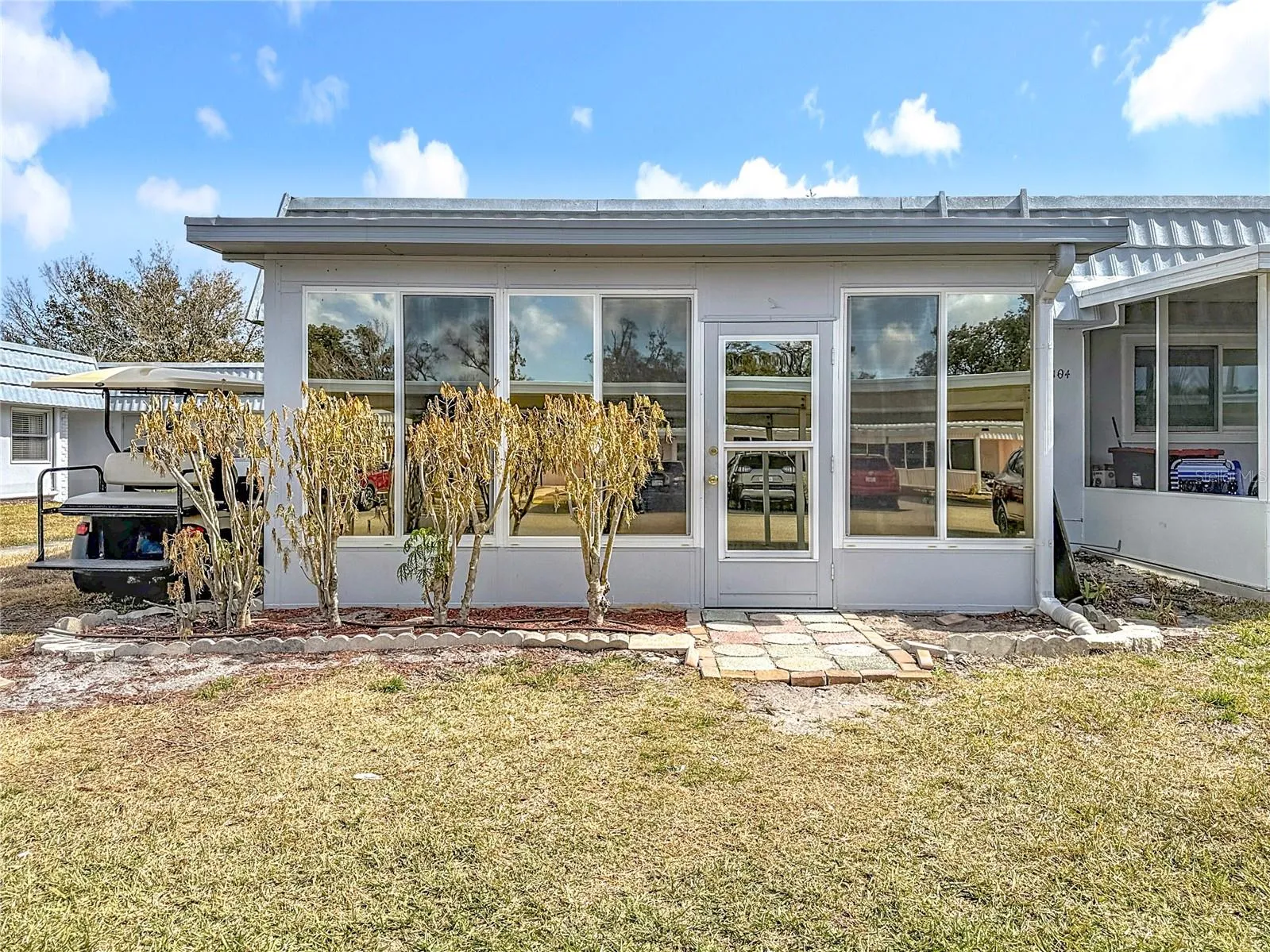 One or more photo(s) has been virtually staged. Price improvement! Welcome to maintenance-free living in the sought after 55+ community of Kings Point. This beautifully updated one bedroom 1.5 bath condo features FRESH PAINT and LUXURY VINYL PLANK FLOORING throughout the unit. The updated kitchen includes refurbished cabinets, new stove, new microwave and new countertops making meal prep a breeze. Newer side by side refrigerator with ice maker included. The spacious bedroom offers a full wall of closet space, en suite bath with brand new glassed in shower with built-in seat. Both baths feature new vanities. Sliders to relaxing EXTENDED ENCLOSED FLORIDA ROOM. Smooth ceilings, no popcorn! NEW ROOF! New GACO Silicone roof coating installed March 2026 designed to protect against severe weather while providing added insulation and long lasting durability. Kings Point offers 24 hour manned gate security and low condo fees that include Cable, Internet, Water, Sewer, Trash, Landscaping, Exterior maintenance including Roof, Paint and more. Residents can enjoy resort style amenities, including Multiple pools, Pickle ball, 2 Expansive Clubhouses, State of the Art Fitness Center, Restaurant and Bar, Theater, Tennis, 27 holes of golf, countless social clubs and activities for an active life lifestyle. Ideally located between Tampa and Sarasota with easy access to airports, sports, entertainment events, shopping, dining, medical facilities and the Gulf Coast beautiful beaches! This condo is conveniently located close to the North Clubhouse and has an assigned covered parking spot just steps from the unit! EZGO GOLF CART with new batteries included with the sale. Sun City Center is an award winning golf cart community with many locations in town accessible by golf cart.. Don’t miss this opportunity to enjoy vibrant carefree Florida living at it best!