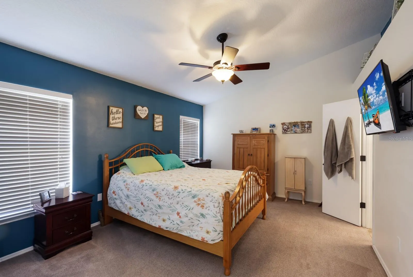 - Ceiling Fans(s), Thermostat, Walk-In Closet(s), Primary Bedroom Main Floor, Split Bedroom, Window Treatments, High Ceilings, Vaulted Ceiling(s)
