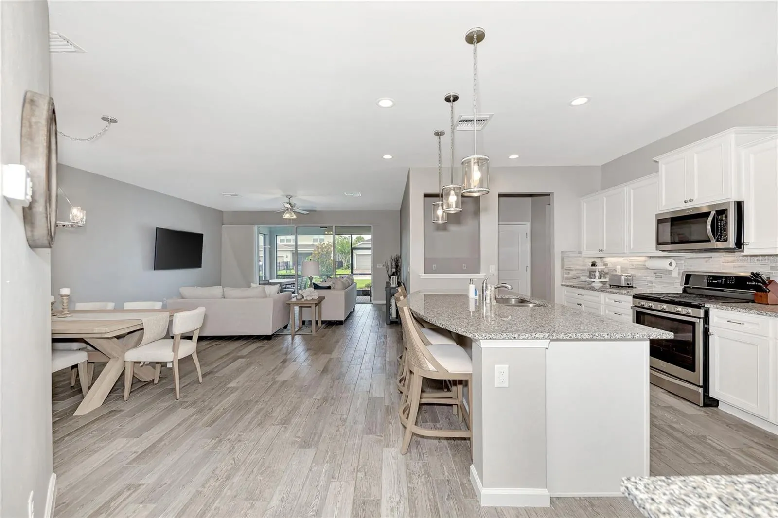 - Ceiling Fans(s), Thermostat, Walk-In Closet(s), Living Room/Dining Room Combo, Eat-in Kitchen, Split Bedroom, Window Treatments, Solid Wood Cabinets, Solid Surface Counters
