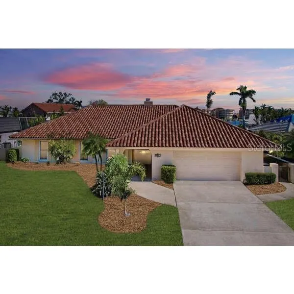 One or more photo(s) has been virtually staged. Welcome to Bayway Isles, a private waterfront community just 5 minutes from St. Pete and Pass-A-Grille beaches. This 3-bedroom, 4-bath home offers stunning water views, a spacious living area with a wood-burning fireplace, and a screened-in heated pool with a covered patio. The newer dock, with composite decking and deep-water access, is perfect for boating enthusiasts with space for a 40′ boat. Hurricane-impact windows and roll-down shutters provide added security.