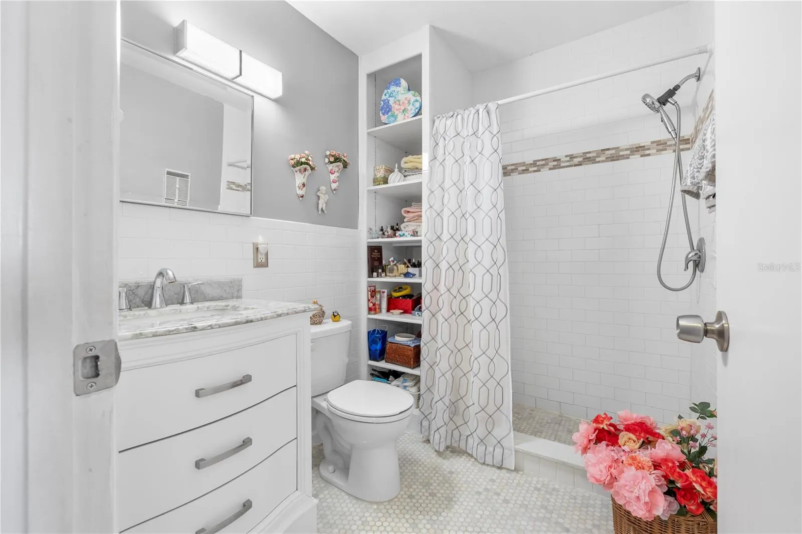 The primary suite offers a walk-in closet and an elegant ensuite bath, while the partially remodeled bathrooms (2022) add a fresh, contemporary touch. A dedicated utility room with washer and dryer, generous storage space, and a new building roof provide added convenience and peace of mind.