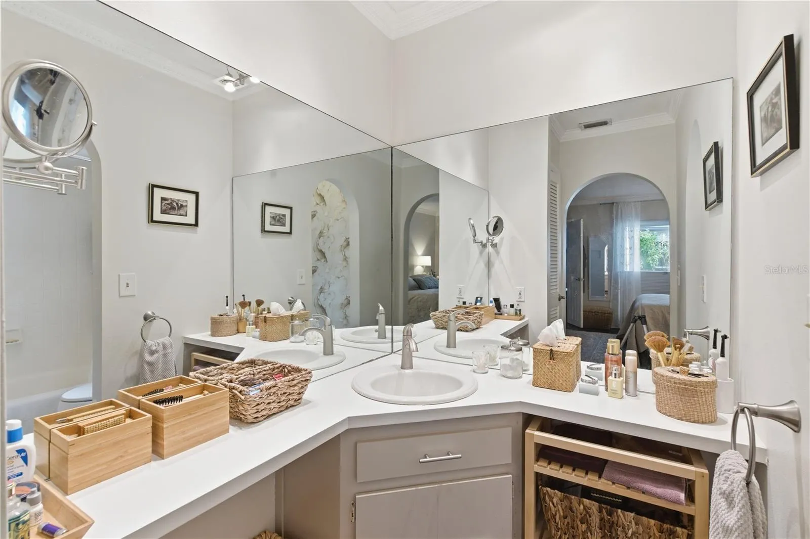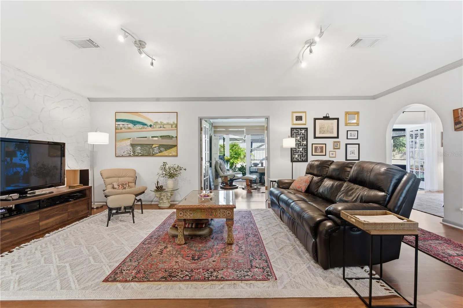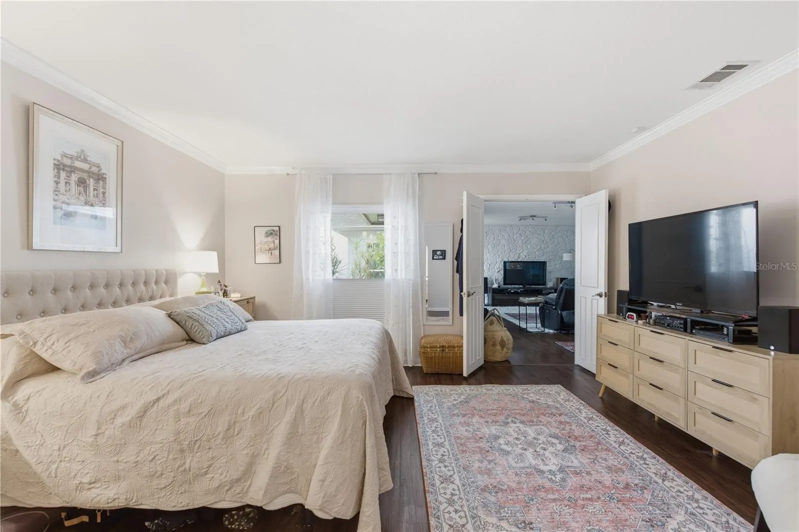 A large sunroom — included in the heated square footage (Buyer responsible for verifying all measurements) provides exceptional flexibility as a bonus space, family room, or entertaining area with views of the backyard oasis. The primary suite offers a peaceful retreat with French doors and a soothing atmosphere.