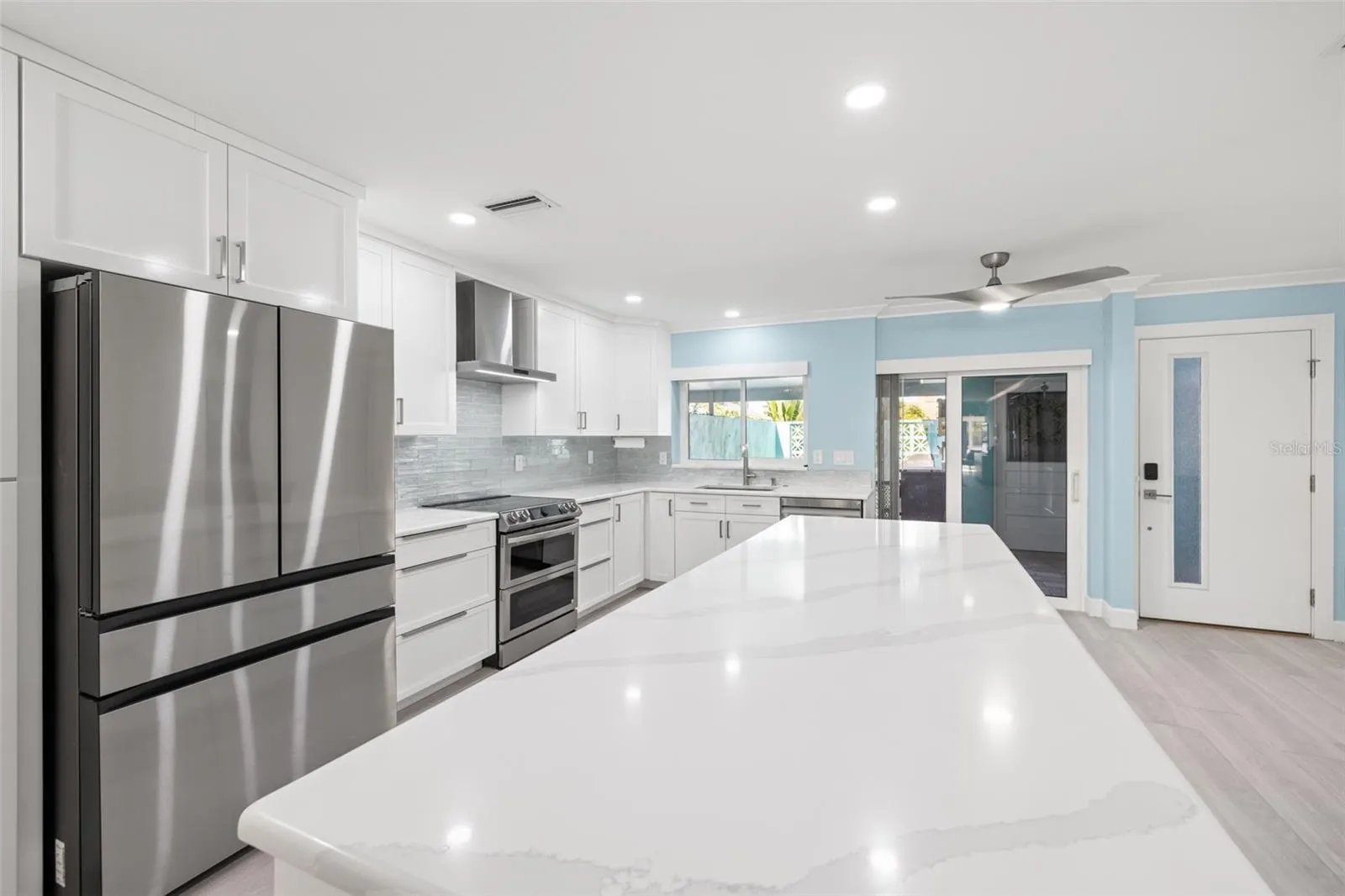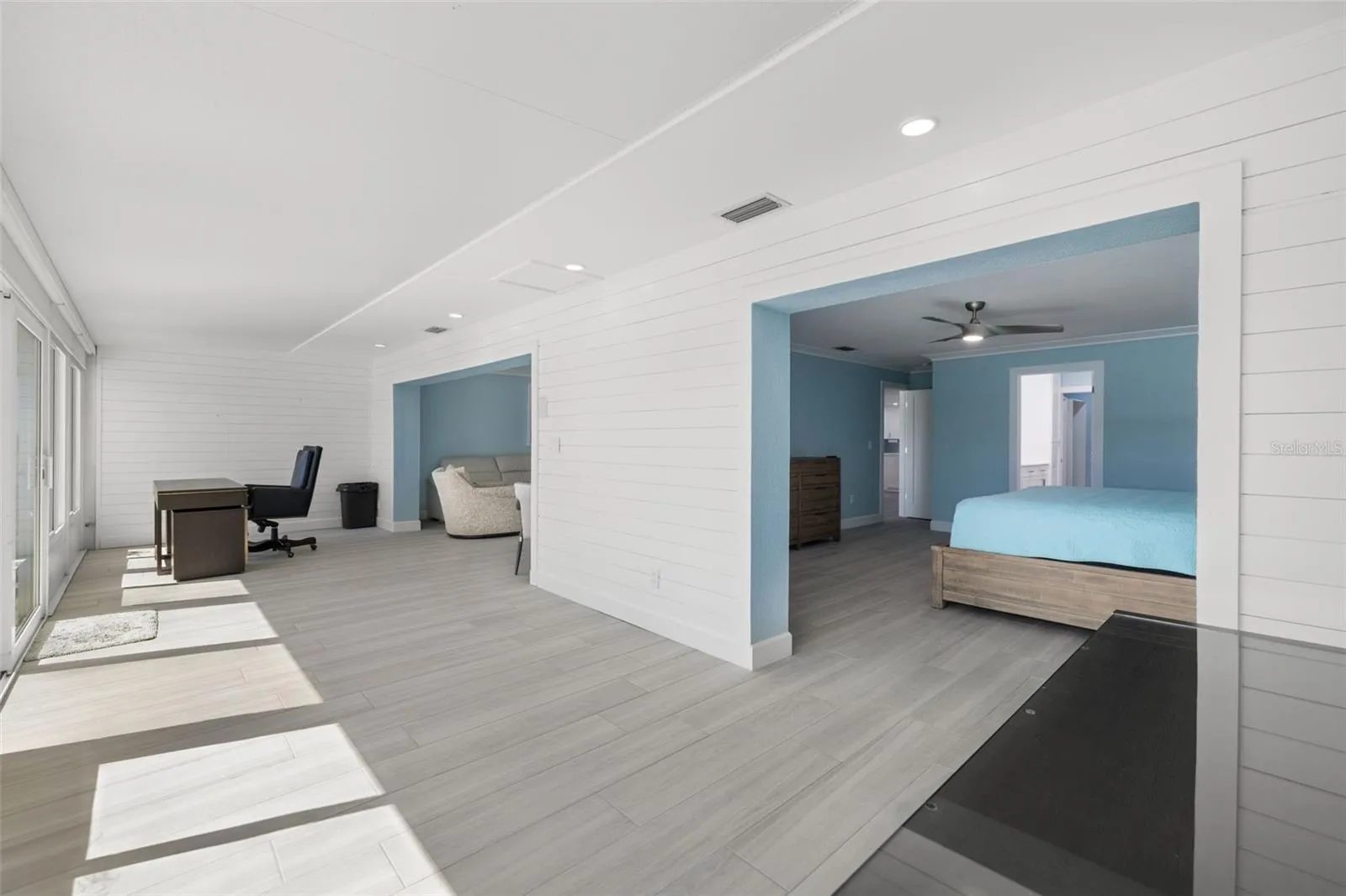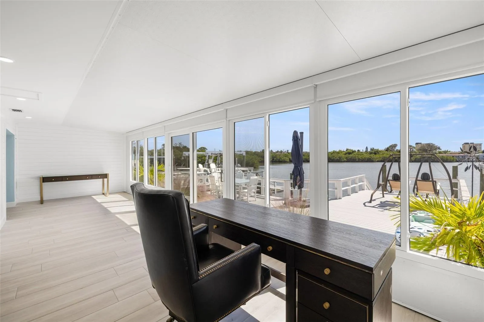 Wide water views greet you the moment you enter. The main living area was thoughtfully reconfigured by relocating a wall to widen the space and frame Boca Ciega Bay, creating a seamless indoor-outdoor feel that shifts with the light throughout the day.