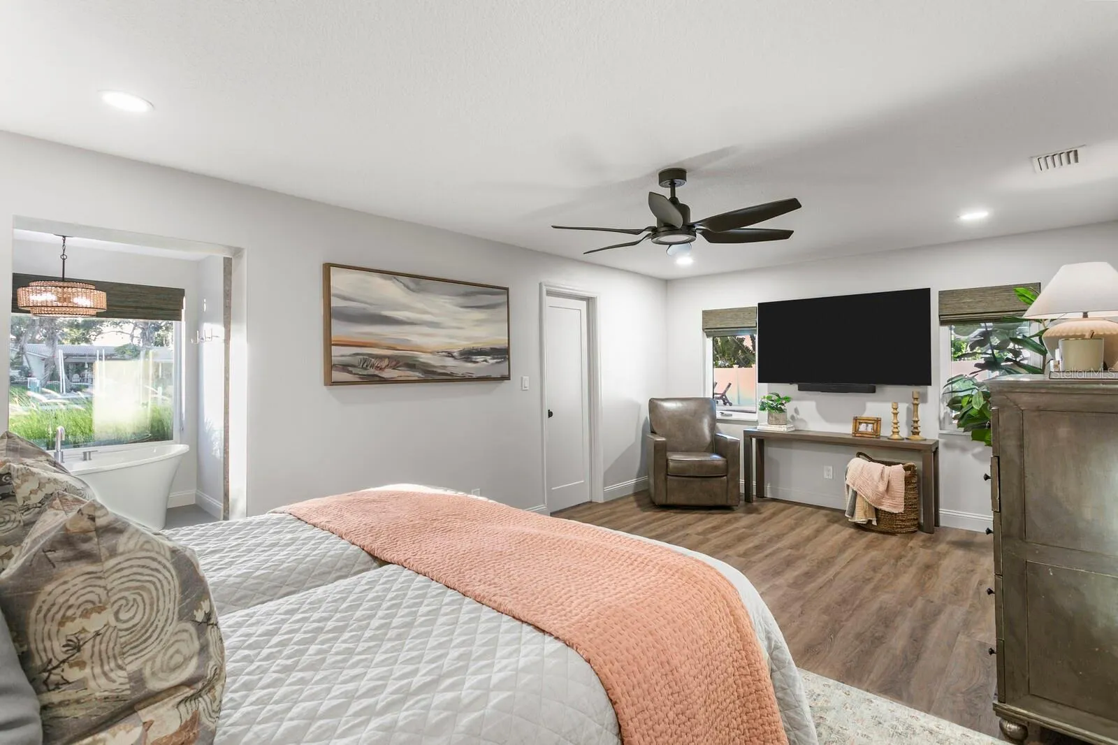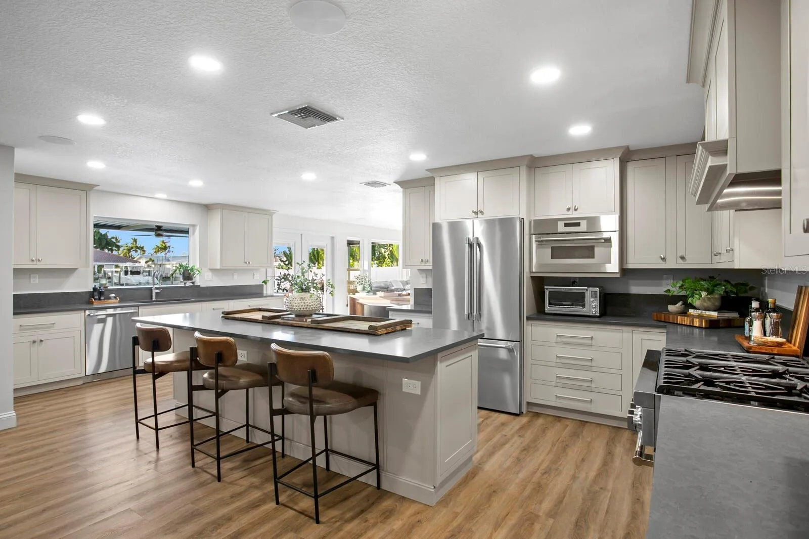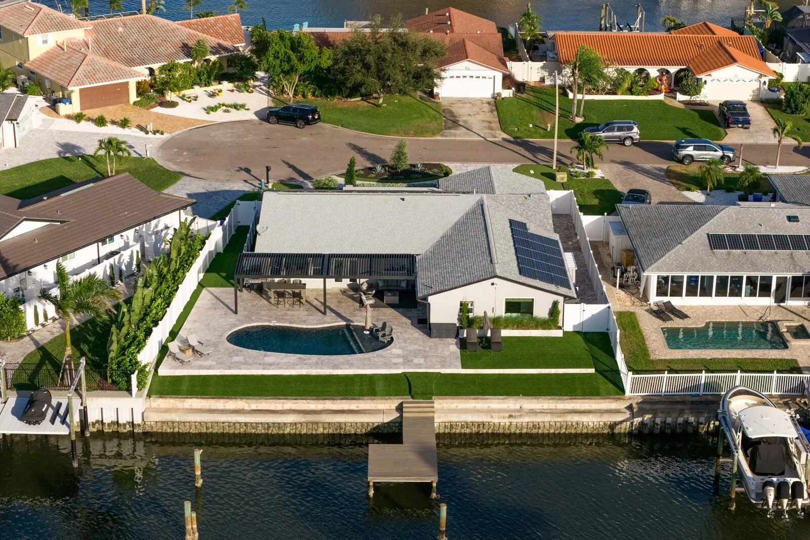 Under contract-accepting backup offers. This Broadwater waterfront home is like no other you’ve seen! Completely rebuilt from the studs & slab in 2024, it’s essentially a brand new home (finished just before the ‘24 storms; no water intrusion at all from them!). Professionally designed and impeccably executed, you will enjoy this reimagined home that has a centerpiece kitchen that is an absolute show-stopper. Oh, and an incredible butler’s pantry that’s an entire separate room! There’s formal living and dining, as well as a comfortable family room overlooking the lanai. A two-person office features built-in cabinetry and storage. The primary bedroom suite features a private bath that rivals any hotel – a soaking tub, large shower, water closet with Moen smart bidet toilet, and a vanity with double sinks and a dressing space. There are two additional bedrooms and full baths. Outside, enjoy the lanai in all weather with a StruXur smart motorized pergola system, hard-wired natural gas grill, and plenty of space to relax poolside. The salt water pool with sun shelf is heated with natural gas – and don’t miss the clever pool bath with exterior access only. Synthetic turf makes for easy maintenance front and back. The dock has been plumbed for electric and water, and is ready for you to customize for your own boating pleasure. This wide canal has easy access out to Boca Ciega Bay, the Intracoastal Waterway and the Gulf. It’s an easy drive to award-winning beaches or to vibrant downtown St. Petersburg. There are far too many features and upgrades to list here; make an appointment to see it for yourself today!