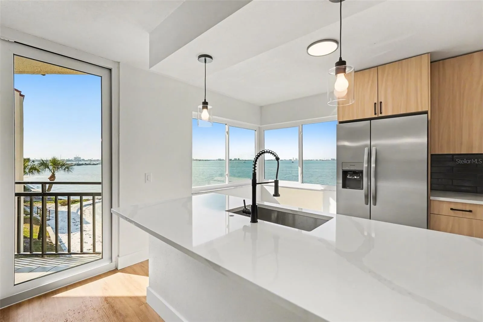 Enjoy gorgeous water views of Boca Ciega Bay from this beautifully updated 2-bedroom, 2-bath La Puerta waterfront condominium. La Puerta is one of the charming communities within Isla del Sol, ideally located on the Pinellas Bayway between I-275 and St. Pete Beach. The condo features a modern kitchen with updated cabinetry, countertops, and new stainless appliances. Both Bathrooms have been fully also updated. The laundry room in condo brings added convenience. The waterfront La Puerta patio is a favorite gathering area with pool, spa, tiki huts and grills. Membership is available to the Isla del Sol Yacht & Country Club, located on the waterfront in the heart of the community. Club amenities include a marina, golf, tennis, pickleball, fitness facility, waterfront clubhouse, and pool, along with a full calendar of social events and activities. Membership is not included with condo ownership. Contact the club for information. Move-in ready and thoughtfully updated, this condo offers effortless waterfront living with breathtaking views. Welcome to your waterfront retreat!