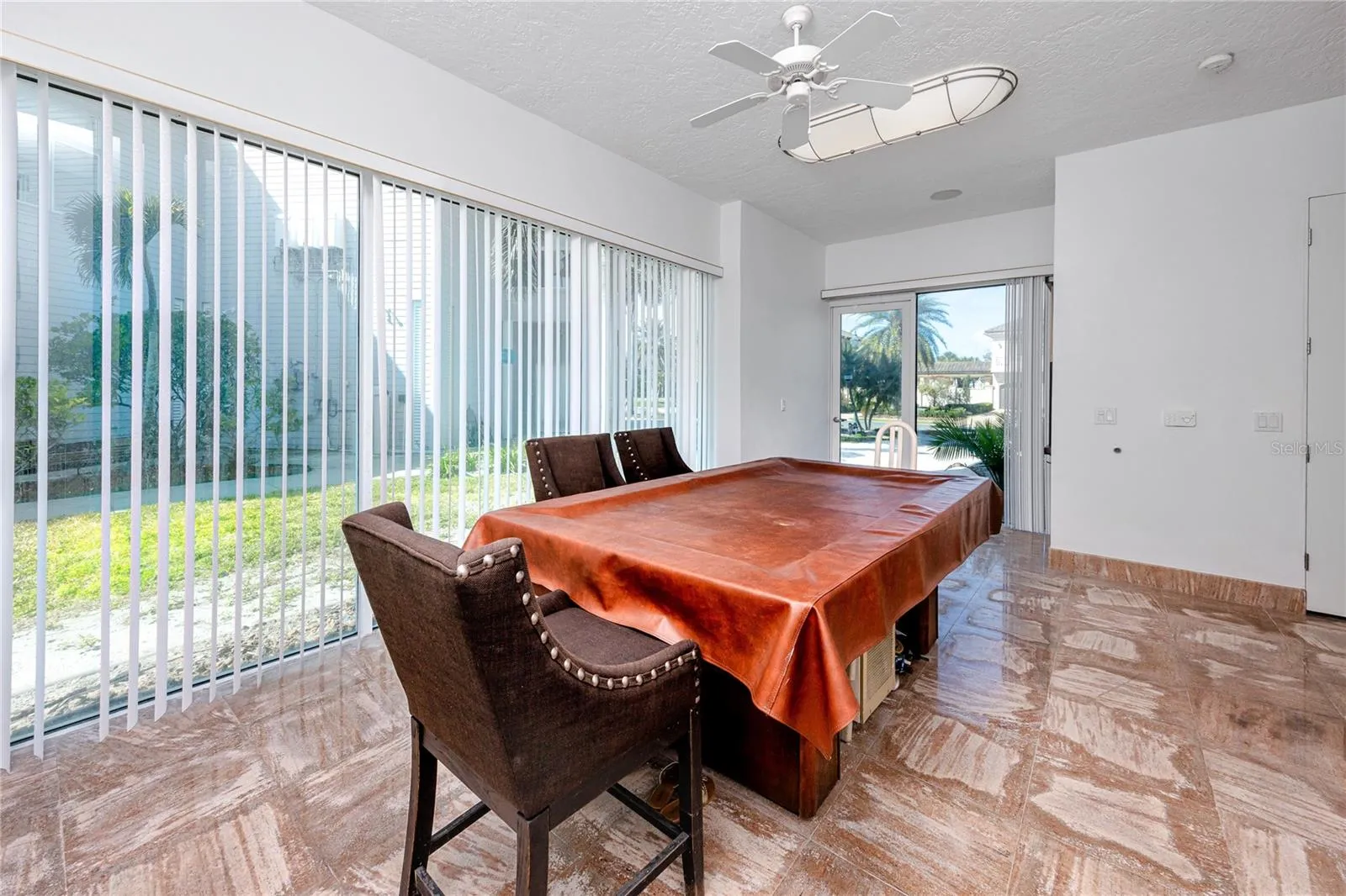 The heated gunite pool and spa, enclosed for comfort and equipped with self-cleaning technology, is complemented by an outdoor kitchen making it ideal for sunset entertaining. A private dock extends from the estate’s 100 feet of direct waterfront, complementing the home’s uninterrupted sightlines across Sarasota Bay.