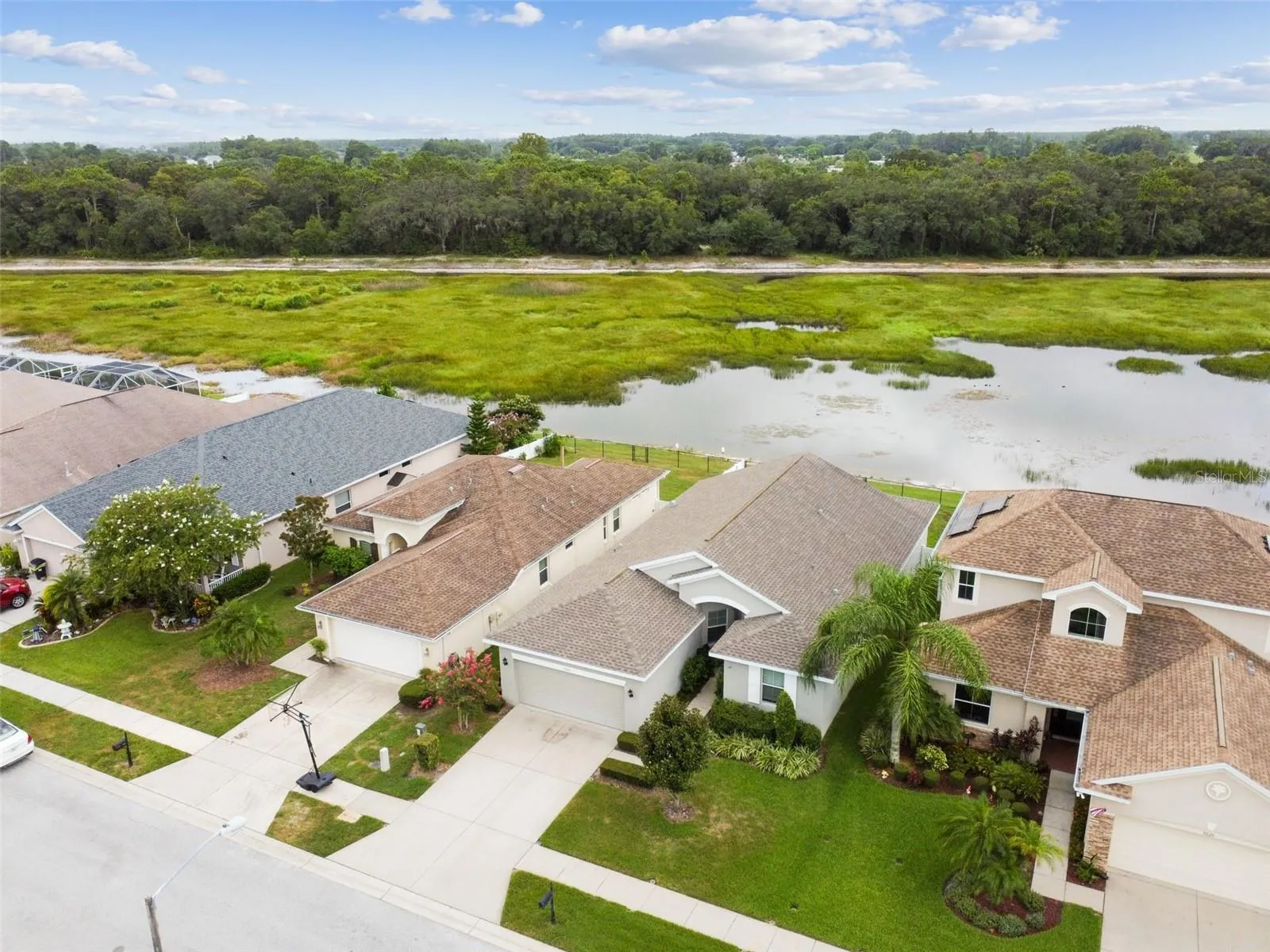 LOVE LIGHT? This 4/2 STUNNER is sure to please! MULTIPLE WINDOWS enhance the OPEN FLOOR PLAN highlighted with HIGH CEILINGS to showcase the CAPTIVATING WATER & CONSERVATION VIEWS that will inspire family and friends with sanctuary daydreams! The CHIC KITCHEN with SHAKER CABINETS, GRANITE COUNTERTOPS, a BREAKFAST BAR, an EAT-IN DINING AREA, and STAINLESS STEEL APPLIANCES looks out to the Family Room and Dining Room allowing the host and hostess to mingle with everyone. The Family Room enjoys Sliding Glass Doors that open up to a COVERED PAVER PATIO perfect for catching glimpses of wildlife while sipping on a morning coffee or an evening cocktail. And to make it even better – the backyard is FULLY FENCED so you can relax if any little ones or fur-babies want to play outside. The perimeter is thoughtfully built with a gated, chain-link fence that allows you to embrace the backyard views, and PRIVACY FENCES along the sides to maintain a sense of retreat. Back inside, the MASTER ENSUITE is its own luxurious haven – designed with PICTURE WINDOWS, a TRAY CEILING, TWO CLOSETS (one WALK-IN), TWO VANITIES, GRANITE COUNTERTOPS, a GARDEN TUB, and a WALK-IN SHOWER. Toward the front of the house, is another FULL BATH with a GRANITE COUNTERTOPS and a SHOWER/TUB combo. There are 3 more bedrooms … or make an EXECUTIVE SUITE inside the room with the GLASS DOUBLE DOORS! This WELL MAINTAINED 2017-BUILT HOME features a 2-CAR GARAGE, ENGINEERED HARDWOOD in the Family Room & Dining Room, an INSIDE LAUNDRY ROOM with a CLOSET, PLENTY OF CEILING FANS, a WATER SOFTENER, a RING DOORBELL, and is equipped with a subscription SECURITY SYSTEM. GAS is not currently connected but can be made available. This POSH HOME is located near beaches, golf courses, shopping, restaurants, and medical facilities. SEE IT TO BELIEVE IT!