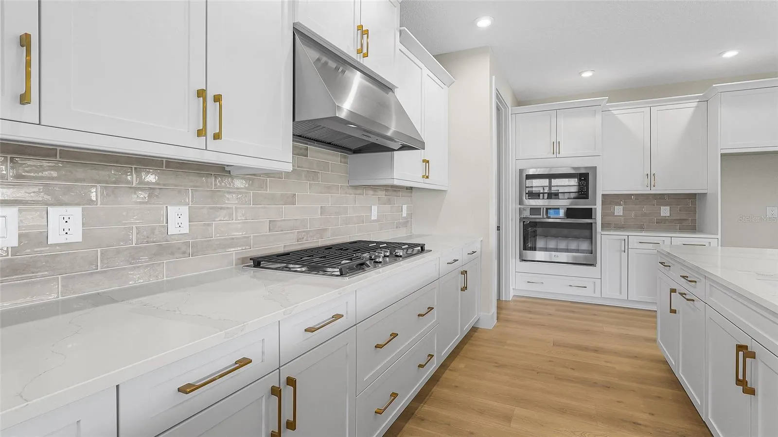 Featuring 3 spacious bedrooms, 3 full bathrooms, and a versatile den ideal for a home office or guest space, this thoughtfully designed floor plan adapts to your lifestyle. The Chef Kitchen features a 36” Stainless Steel Gas Cooktop, veined quartz countertop, upgraded large cabinet crown molding, 24” Deep Cabinet above the refrigerator with side panel, Artisan multitone backsplash tile, and Contemporary Sink Bowl Stainless Sink. Designer Features are Laminate wood plank flooring in Main Living, Flex space, Kitchen and Laundry. The Owner’s Bath includes Frameless Shower enclosures. Blending elegant design with practical luxury, the Laura at Woodland Preserve is ready to welcome you home.