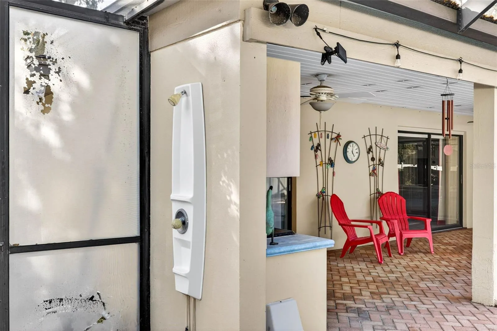 Enjoy pool and spa views from almost every room in the home. The expansive pavered patio offers multiple gathering areas, generous counter space with a sink, and is ideal for hosting. There’s even an outdoor shower to rinse off after a swim.