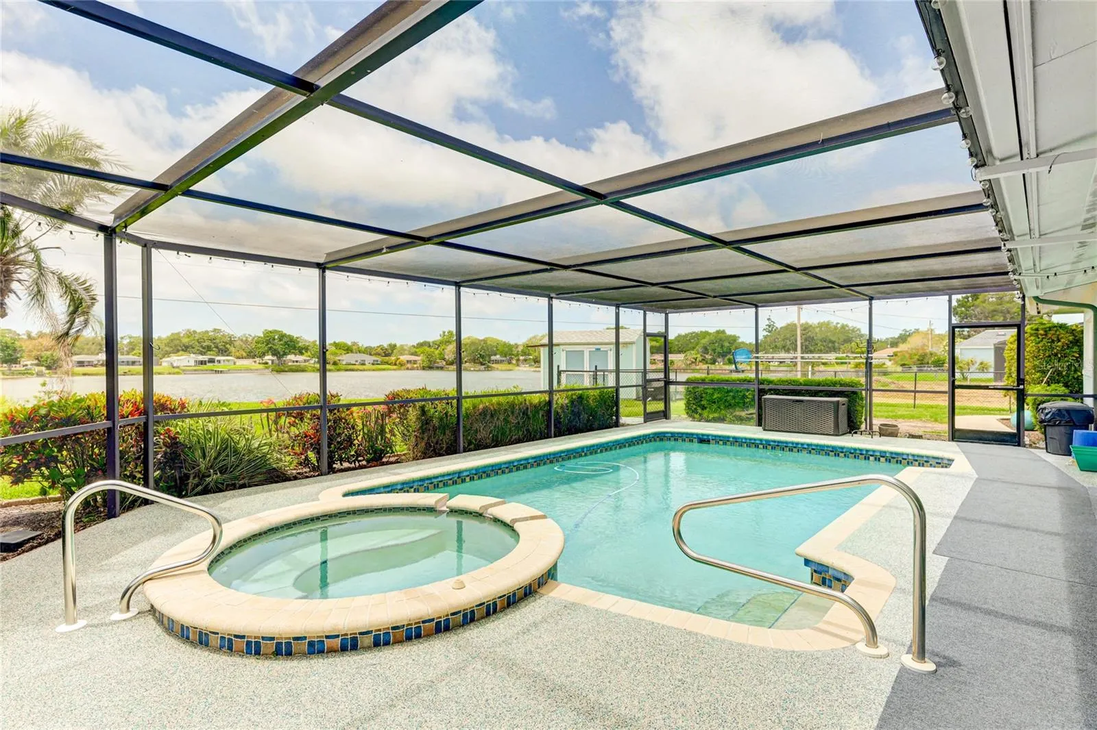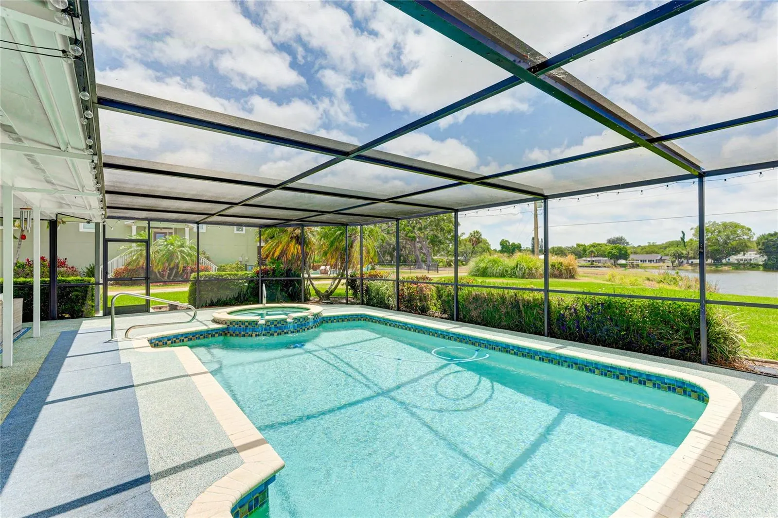 - In Ground, Gunite, Salt Water, Screen Enclosure, Pool Sweep
