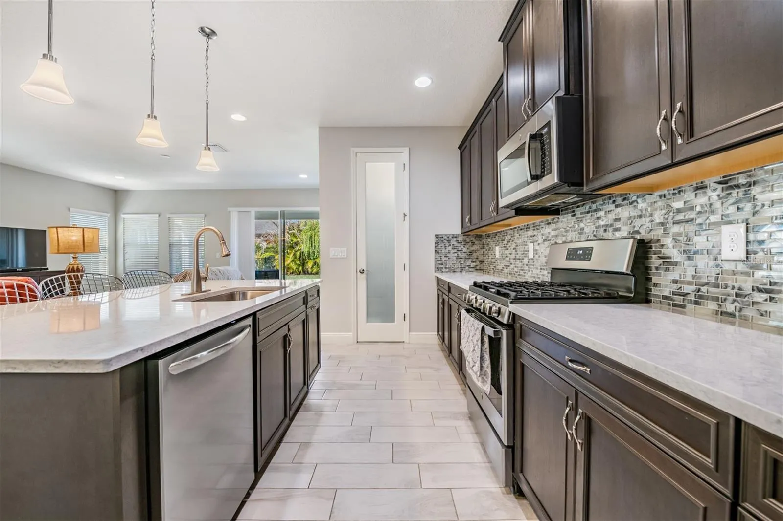 Welcome to Waterset in Apollo Beach! Built in 2020 by Homes by WestBay, this Sandpiper floor plan offers 4 bedrooms, 3 baths, and 2,805 sq ft on a quiet street. The split layout features a spacious primary suite with custom closets and a secondary en-suite bedroom—ideal for guests or in-laws. Enjoy tall ceilings, arched hallways, abundant natural light, and quartz countertops throughout. Upgrades include added laundry storage, overhead garage racks, mature landscaping with St. Augustine grass, privacy palms, and a blooming Bottlebrush tree. The HVAC is regularly serviced and under warranty. Resort-style amenities include pools, clubhouse, café, sports complex, trails, and more—all with a low annual HOA of $151.41.