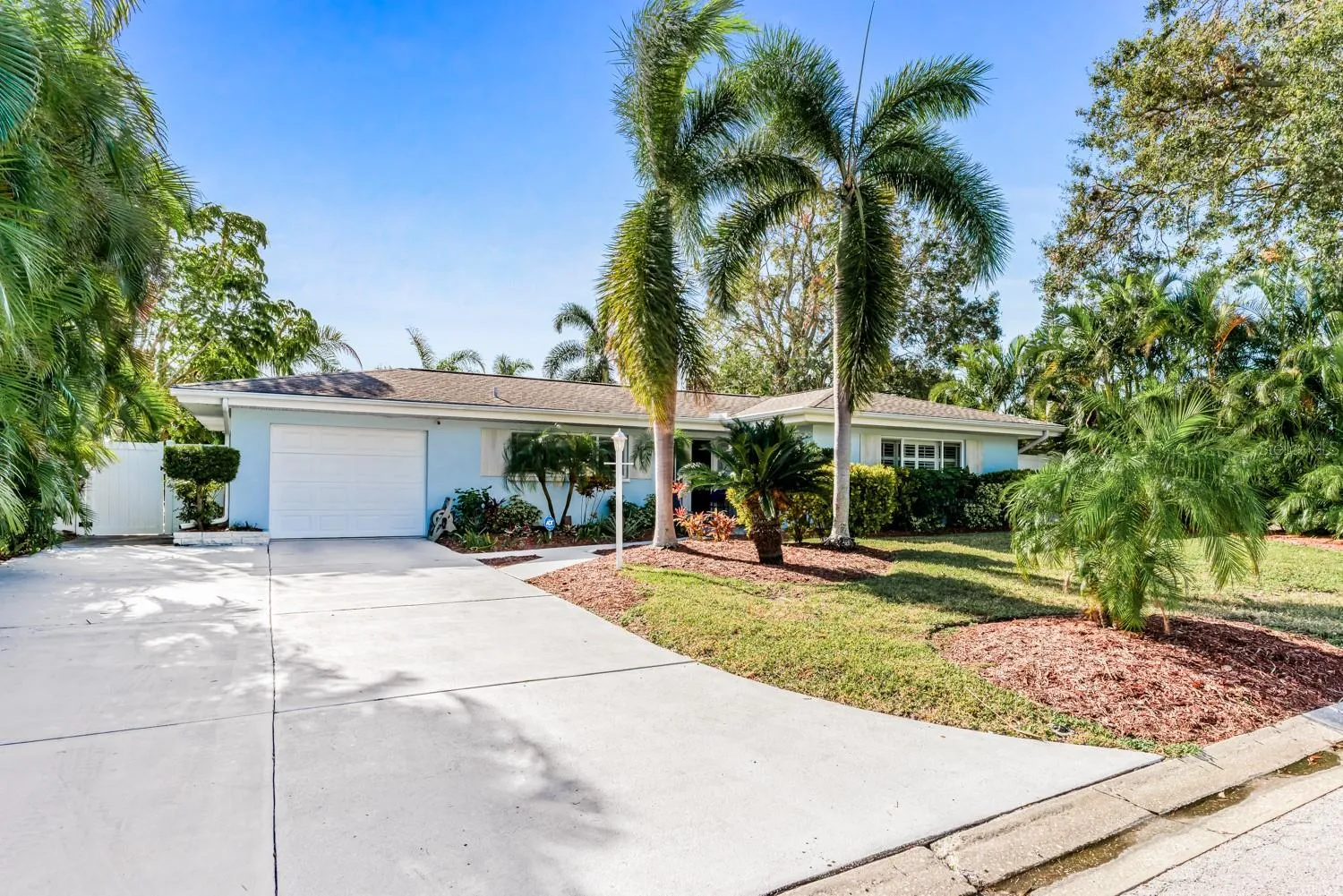 Welcome to your own tropical paradise! This charming 2 bedroom, 2 bath home in Belleair Manor exudes a tropical beach vibe and is just a short drive away from the stunning beaches of the Gulf of Mexico. Situated in a non-evacuation zone X, as most mortgage companies do not require flood insurance. It has proven its resilience by weathering hurricanes Helene and Milton without any visible damage. The home boasts an open floor plan with a kitchen featuring a breakfast bar, stainless steel appliances, oak cabinets, granite countertops, and ceramic tile. The bathrooms are equipped with newer vanities, granite, ceramic tile, and glass showers. The Florida room offers floor-to-ceiling windows with natural wood blinds that overlook the pool. Step into the spacious screened bonus room, perfect for quiet evenings or entertaining guests. Outside, the pool deck beckons with a stunning saltwater pool complete with a sun shelf, fountain, sitting bench, and flowing fountains. The pool is surrounded by a private fenced yard with lush tropical landscaping and a sprinkler system. The driveway has been enlarged to accommodate a boat, RV, or guests. Centrally located near restaurants, shopping, hospitals, a boat ramp, and the intercoastal waterway, this home truly offers the best of tropical living.