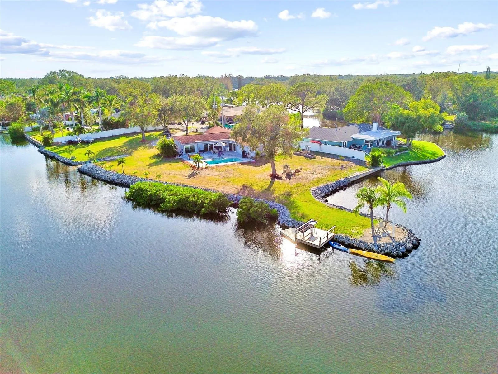 NO FLOODING OR DAMAGE AFTER RECENT HURRACAINES HELENE AND MILTON. Discover your serene sanctuary in heart of Largo, a stunning four-bedroom, two-bath waterfront retreat on 1.28 acres with Tampa Bay access via Allen’s Creek. This property offers the ideal blend of privacy and convenience, with room to expand to build another house and features designed for effortless coastal living. Enjoy expansive water views from every bedroom, a new boat dock, limestone rock boat ramp, fire pit, fishing area, hot tub and a 2021 saltwater pool. The seawall was repaired in 2019 with limestone rocks. The upgraded kitchen boasts granite countertops, stainless steel appliances, and dual islands, ideal for entertaining. A versatile bonus room can function as a dining space, office or playroom. Hurricane impact windows and sliders in 2022, a newer air-conditioning system, renovated baths, and remote-controlled shades in the living room and primary suite ensure comfort year-round. The private primary bedroom offers direct pool access, while the two-car garage is equipped with gorilla flooring and a hurricane-rated door. Evenings here are magical, the fire pit invites friends and family for s’mores under the stars, while the saltwater pool, illuminated with beautiful changing lights, creates a perfect setting for relaxation. Watching seabirds, dolphins, and manatees from the comfort of home adds to the charm, making every moment special. Take your fishing poles and enjoy catching a variety of fish such as snapper, redfish, flounder, jacks, snook, tarpon, and more. Enjoy kayaking, paddleboarding, or taking your boat out. In addition to leisure, this home presents opportunities for creativity and sustainability. The spacious yard is ideal for growing vegetables, allowing for fresh produce right from home. Restaurants, shopping and beautiful beaches are just minutes away, with easy access to the airport. Experience the best of waterfront living, schedule a showing today and make every sunset unforgettable. No Flood Claims. No Insurance Claims, No FEMA Claims. MOTIVATED SELLER, PRESENT ALL OFFERS.