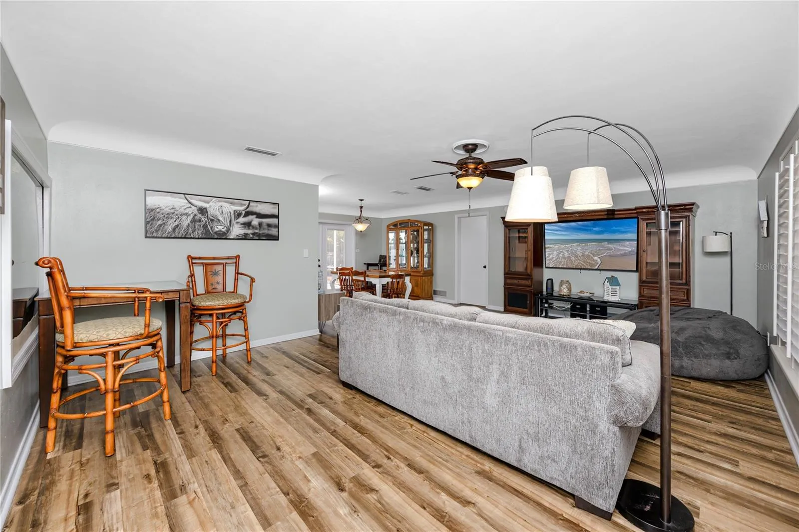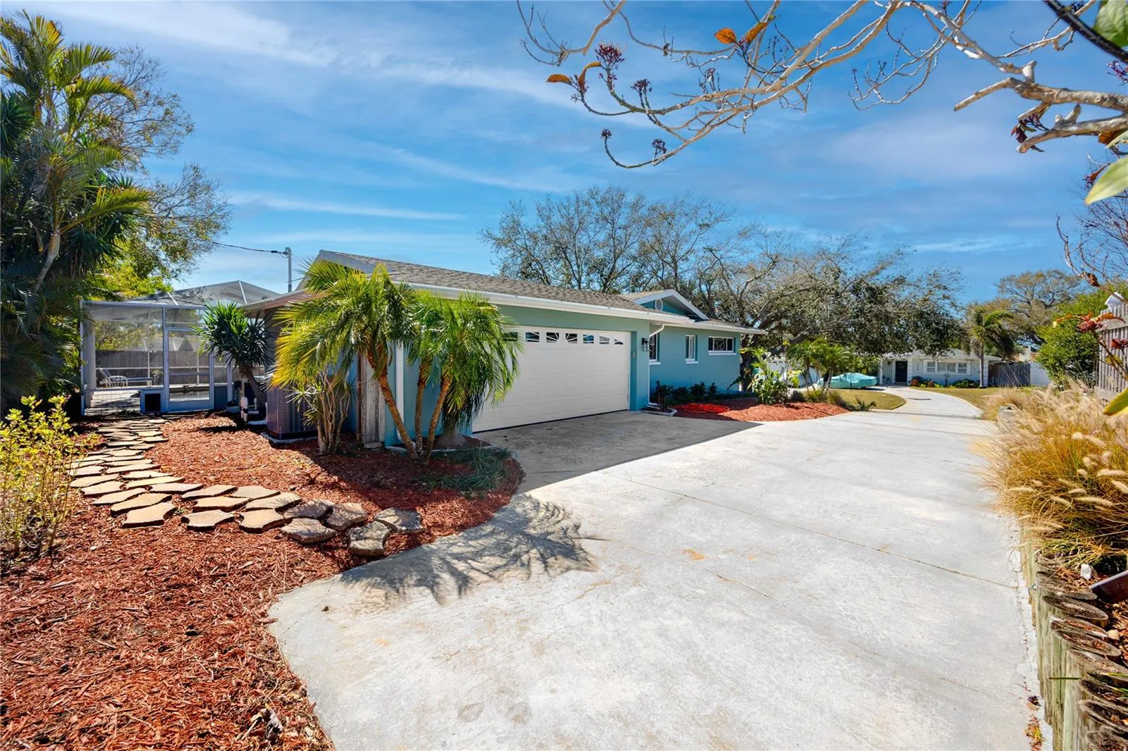 Located in the highly sought-after Harbor Hills neighborhood of Largo, this turnkey 3-bedroom, 2-bath pool home with an oversized two-car garage offers the rare combination of elevation, flexibility, and income potential just minutes from the Gulf beaches. Positioned in Flood Zone X at one of the highest elevations in the area, the property is high and dry with no flood insurance required, an increasingly valuable feature for buyers seeking security and long-term peace of mind. With no minimum night rental restrictions, this single-family home is ideal for both full-time residents and investors looking for a profitable short-term rental less than five miles from Belleair Beach, Indian Rocks Beach, and the Gulf of Mexico.Inside, the home features over 2,000 square feet of thoughtfully designed, carpet-free living space with elegant tile and marble finishes throughout. The desirable split floor plan maximizes privacy while maintaining seamless flow between the living and dining areas, family room (currently styled as a game room), and sunroom, all anchored by a central kitchen designed for entertaining. Granite countertops and full-height granite backsplashes complement stainless steel appliances, while a unique breakfast bar for two extends seamlessly from the kitchen into the sunroom through a server/butler-style pass-through window, enhancing indoor-outdoor entertaining and creating an inviting connection between gathering spaces. Coved ceilings, plantation shutters, and custom window casings add architectural character, while a striking built-in fish tank/terrarium wall creates a distinctive focal point between the living and game room areas, enhancing the home’s coastal charm and conversation appeal. The spacious primary suite showcases marble flooring with mosaic black diamond insets that continue into the ensuite bath, where you’ll find a Roman soaking tub, walk-in shower, split vanities, and updated finishes. The secondary bathroom features modern fixtures, updated tile wainscoting, and a refreshed tub alcove. Multiple sets of French doors open to a large pavered lanai wired for surround sound, leading to a heated lagoon-style PebbleTec pool enclosed by a screened cage and surrounded by mature tropical landscaping. The private fenced backyard creates a resort-style setting ideal for entertaining or relaxing after a beach day. Additional highlights include newer interior paint, a side-facing oversized garage with workshop space and wood cabinetry, garage access directly to the pool deck and adjacent laundry area with utility sink, and an extended driveway accommodating five or more vehicles. The flexible layout and strong rental history enhance both everyday living and short-term rental performance. The pool table conveys, offering immediate turnkey appeal. Conveniently located near the Belleair Causeway, local marinas, Largo Central Park, golf courses, dining, shopping, and with quick access to Clearwater Beach and St. Petersburg, this Harbor Hills pool home delivers the lifestyle buyers are searching for, whether as a primary residence, second home, or active short-term rental investment in one of Pinellas County’s most desirable coastal communities.