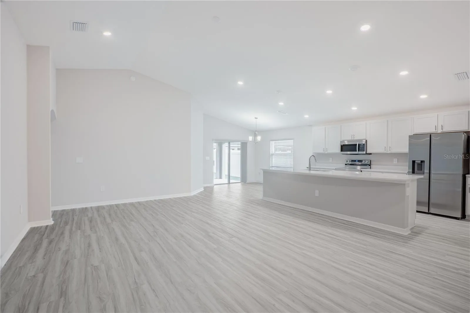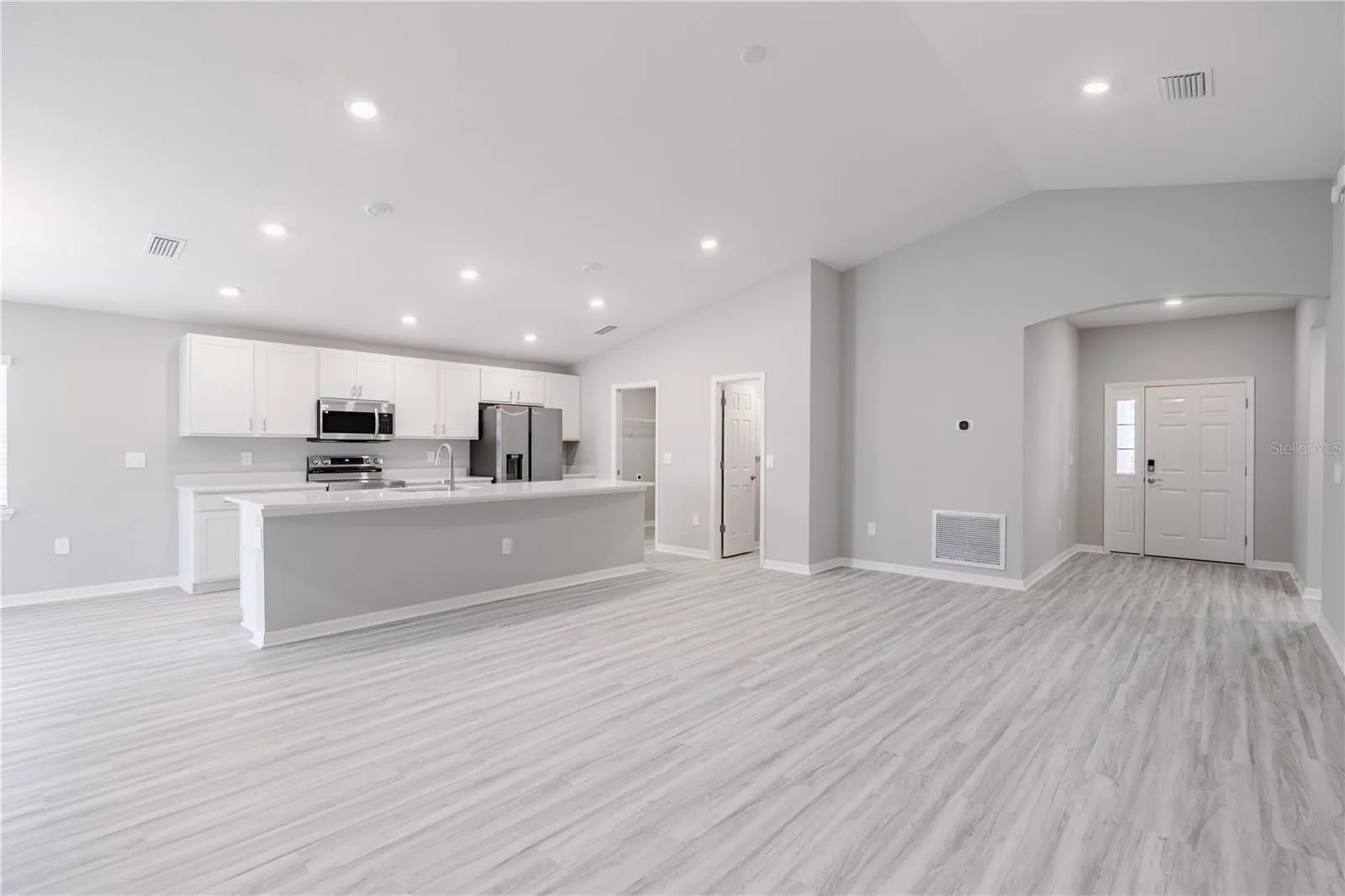New construction home with 1819 square feet on one-story including 4 bedrooms, 2 baths, and an open living area. Enjoy an open kitchen with Quartz countertops, Samsung stainless steel appliances, a walk-in pantry, and a spacious counter height island, fully open to the dining café and gathering room. The living area, laundry room, and baths include luxury wood vinyl plank flooring, with stain-resistant carpet in the bedrooms. Your owner’s suite is complete with a walk-in wardrobe and a private en-suite bath with dual vanities, a tiled shower, and a closeted toilet. Plus, enjoy a covered lanai, 2-car garage, custom-fit window blinds, architectural shingles, energy-efficient insulation and windows, and a full builder warranty. “Please note, virtual tour/photos showcases the home layout; colors and design options in actual home for sale may differ. Furnishings and decor do not convey.