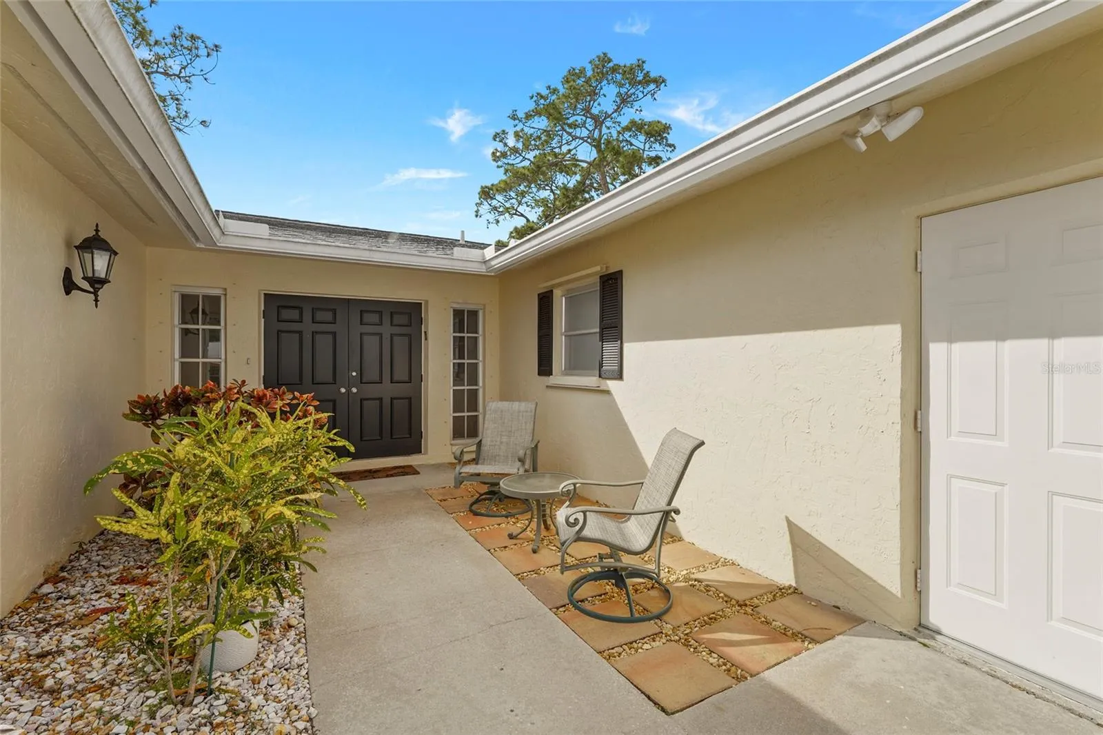 Move right into effortless Florida living with this fully furnished 3-bedroom, 2-bath villa offering 1,630 SqFt of comfortable, maintenance-free living in a prime Sarasota location. Designed for easy everyday living, the home features a bright and versatile Florida Room that adds flexible space for relaxing, entertaining, or working from home. The thoughtful layout provides both openness and privacy, making it ideal as a primary residence, seasonal retreat, or investment opportunity. Major system updates provide peace of mind, including a whole-home water filtration system (2016), hurricane shutters on all openings, and an accordion shutter for the sliders offering added storm protection and potential insurance savings. The kitchen was refreshed with new appliances (2020) complemented by updated light fixtures and new tile flooring in the owner’s suite. The garage becomes a true extension of the home with an epoxy garage floor (2022) creating a clean, finished space alongside the dedicated laundry area featuring a new washer and dryer (2022). Enjoy low-maintenance living with an HOA that covers exterior maintenance (repairs and grounds), and pest control. The community pool is just a short distance away, and Palm Aire Country Club is minutes from your door, offering optional golf, pickleball, dining, and social memberships. Outdoor recreation and everyday convenience are close by, with Conservatory Park and Nathan Benderson Park nearby. You’re also approximately 10 minutes from Sarasota-Bradenton International Airport and The Mall at University Town Center, offering endless dining, shopping, and easy access to Sarasota’s world-famous Gulf beaches. A move-in ready villa combining comfort, thoughtful updates, and an outstanding location — designed for easy Florida living from day one.