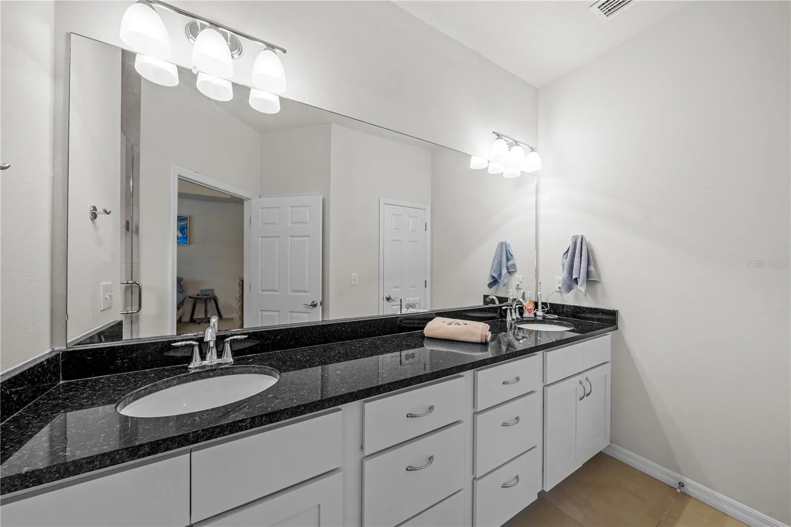 Entering the primary bedroom another great detail overhead beautiful tray ceiling to add detail and character to the room. Primary bedroom features another balcony to enjoy the beautiful Florida sunshine. Additionally the en suite bath contains double sink vanity with granite countertop, glass shower door, and again floor to ceiling tile surround.