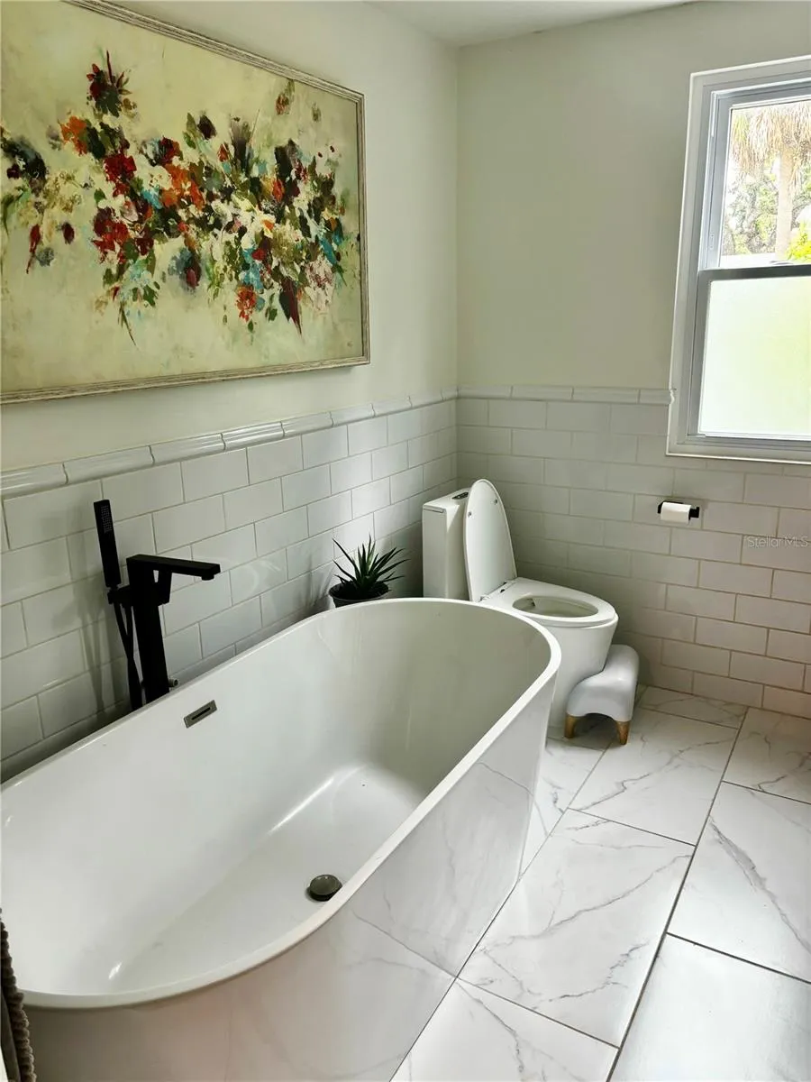 Relaxation: A primary bath with a deep Jacuzzi tub and a cozy sunroom that opens to a private, landscaped courtyard.