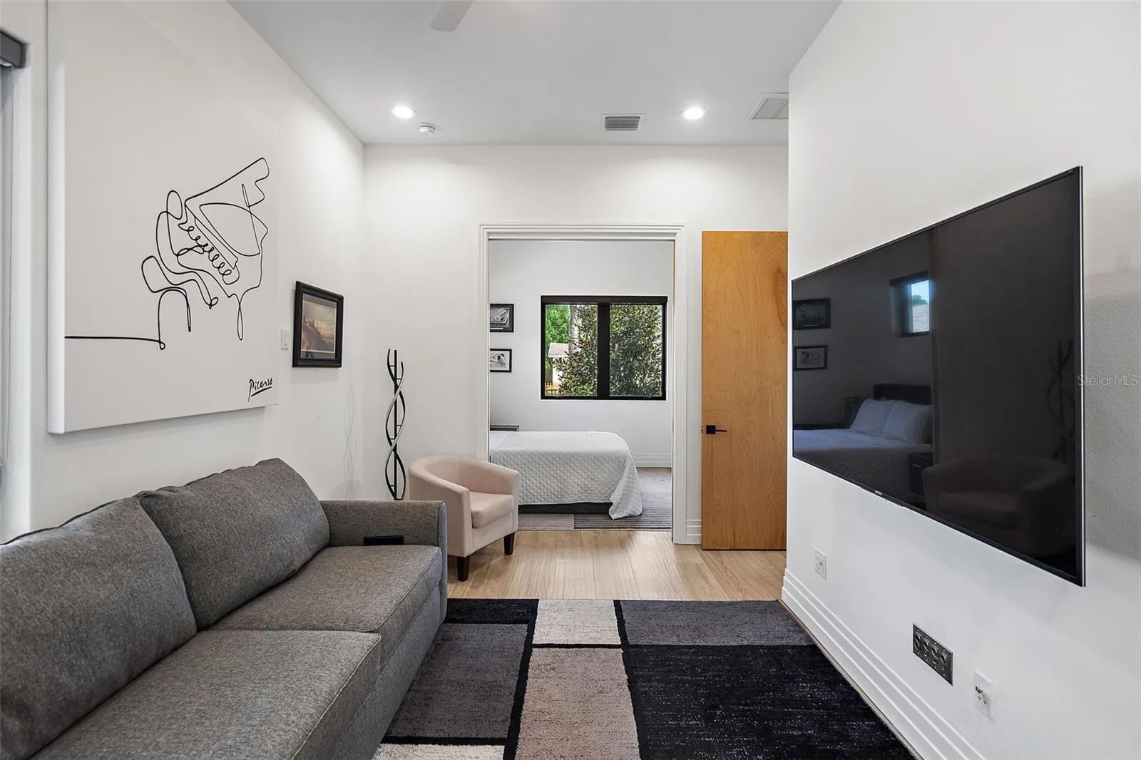 Luxury does not end here. Sliding doors open to your back yard paradise – creating effortless indoor–outdoor living & an ideal backdrop for gatherings. Enjoy brunch in the pavered courtyard by your stunning heated in-ground pool & spa with Pentair control system, relax under the covered lanai or enjoy the FL sunshine on the pool deck. A tall privacy wall makes this space your own & a grassy side lawn & mature landscaping give the best resort vibes. Evening ambiance is enhanced by soft, resort-style perimeter lighting that transforms the courtyard into a private moody oasis after sunset. A detached 2-car garage off the courtyard provides additional storage, alley access, & an interior staircase leads you up to a spacious apartment. This carriage house offers the perfect flexibility for guests, family, or a dedicated work-from-home suite, & provides potential income opportunities. It offers a large living room with plumbing in place for a kitchenette, & a spacious bedroom with full bath. This home places you in one of St. Pete’s most vibrant & progressive neighborhoods, surrounded by award-winning shops & dining, just mins from Beaches, St. Pete Pier, EDGE District & Grand Central. Set near the edge of the Warehouse Arts District, the home is immersed in creative energy, with colorful murals, working studios, & galleries nearby. Homes of this caliber combining new construction, modern design, & a premier walkable location are an incredibly rare find in downtown St. Petersburg!