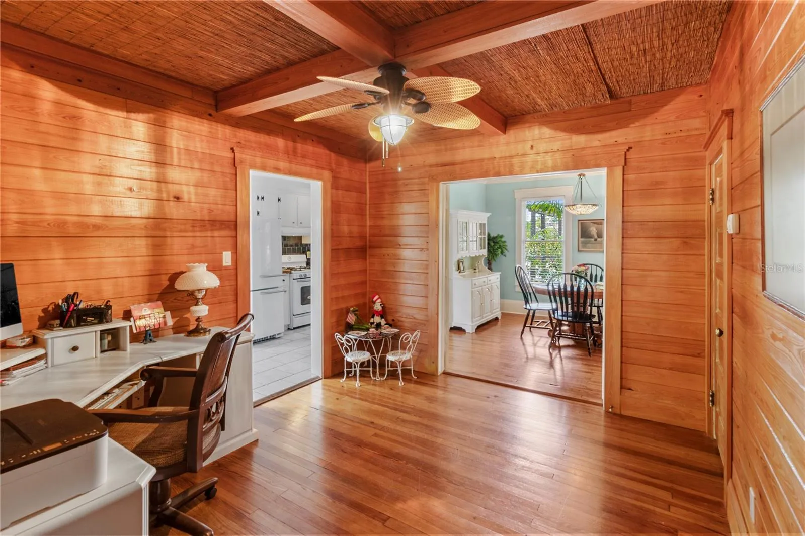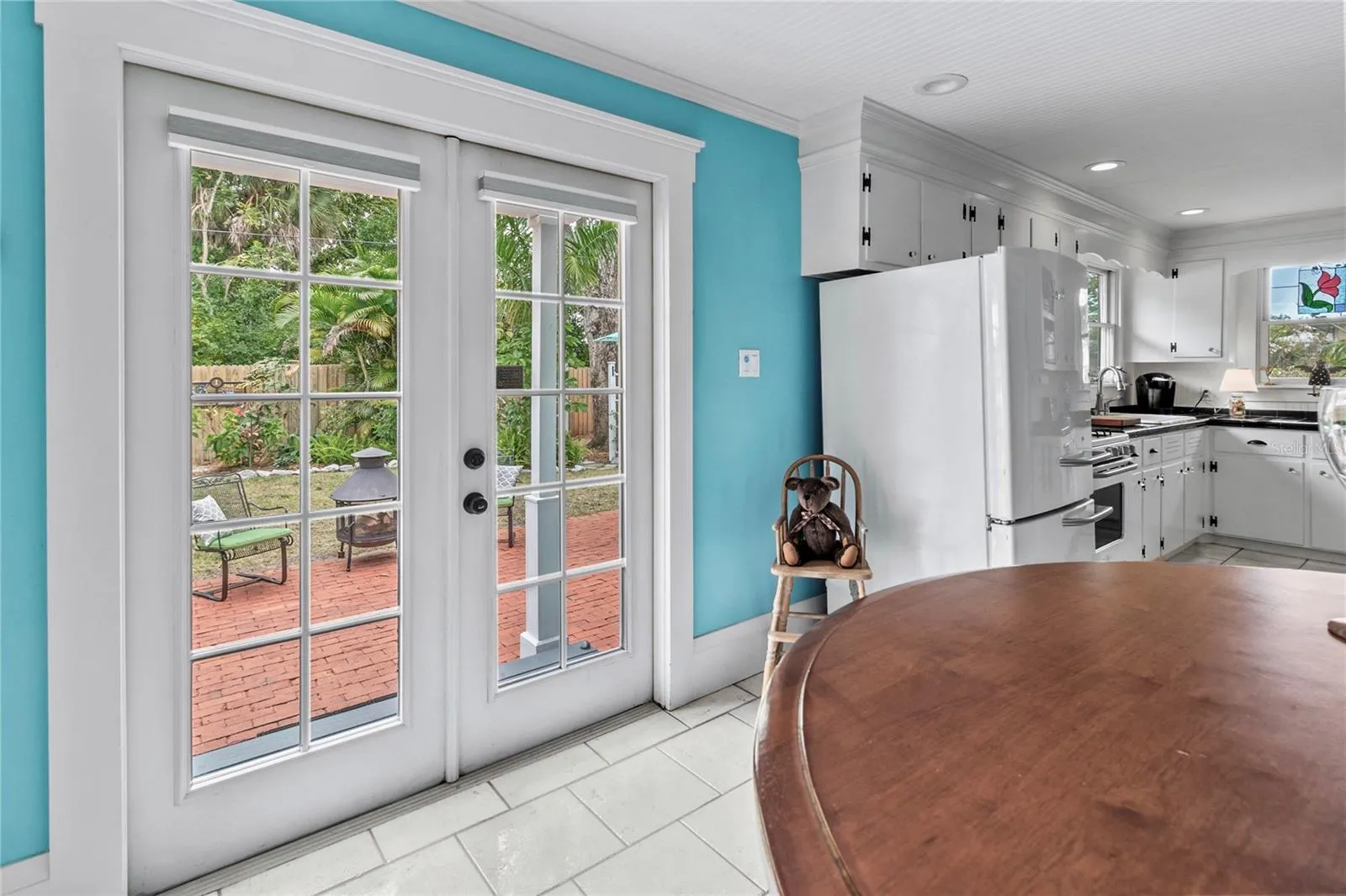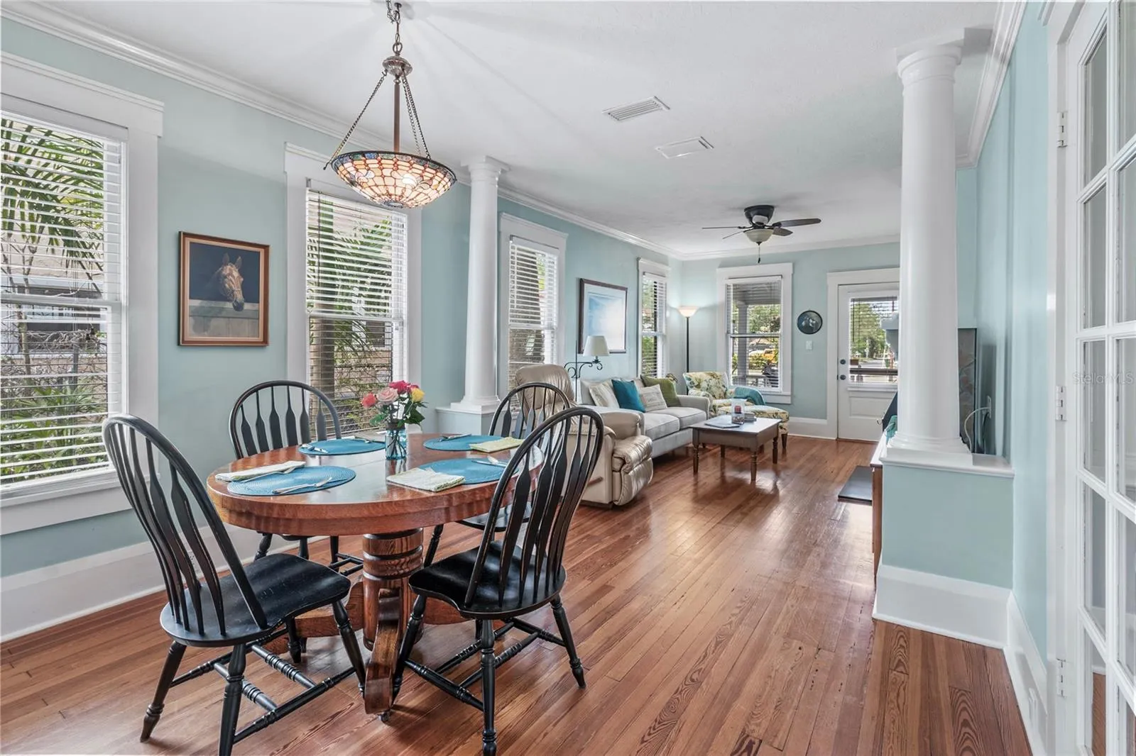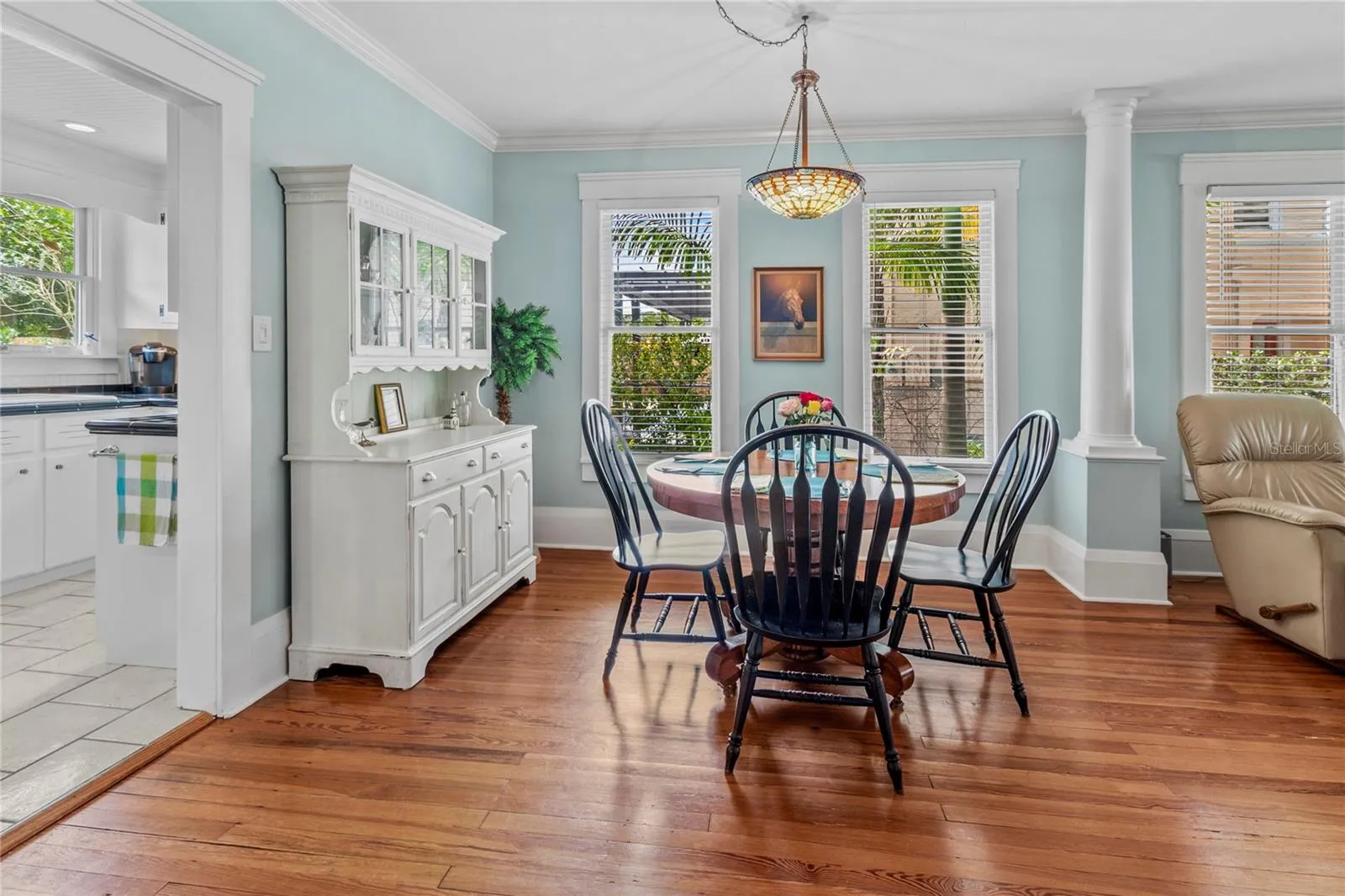 Restored 1922 Key West-style bungalow in the heart of Bradenton’s historic River District – the perfect walking or biking location to the Manatee River, downtown events, parks, boat launches, shopping, dining, and just a few miles to Gulf beaches! This beautiful home has had many substantial upgrades, including a new roof and a restored fireplace. Its high ceilings, light cascading from its many original windows, heart pine floors, extensive woodwork, and HGTV’s coastal colors give you a feeling of calm serenity as you enter. The large front porch and backyard with its brick patio are wonderful spaces to relax, grill out, or entertain. An outdoor shower, sprinkler system, and landscape lighting further enhance this spacious, fenced, and private paradise, along with centennial oaks and tropical plantings. Storage space includes a walk-in master closet, separate utility and pantry rooms, and a spacious stand-up attic. A wood-paneled flex room in the center of the home allows for a home office, playroom, or studio. This cook’s kitchen is a joy with its beautiful windows, cast iron sink, and vintage-look appliances. The detached garage with hot/cold running water may meet other needs, such as a family apartment, rental unit, or office. The wide driveway allows for boat/RV parking, with electric and water hookups, while still having room for multiple vehicles. When it’s time to leave, I-75, Sarasota, and Tampa airports are nearby. Come fall in love with this Olde Florida home! Note: Price includes most furnishings.