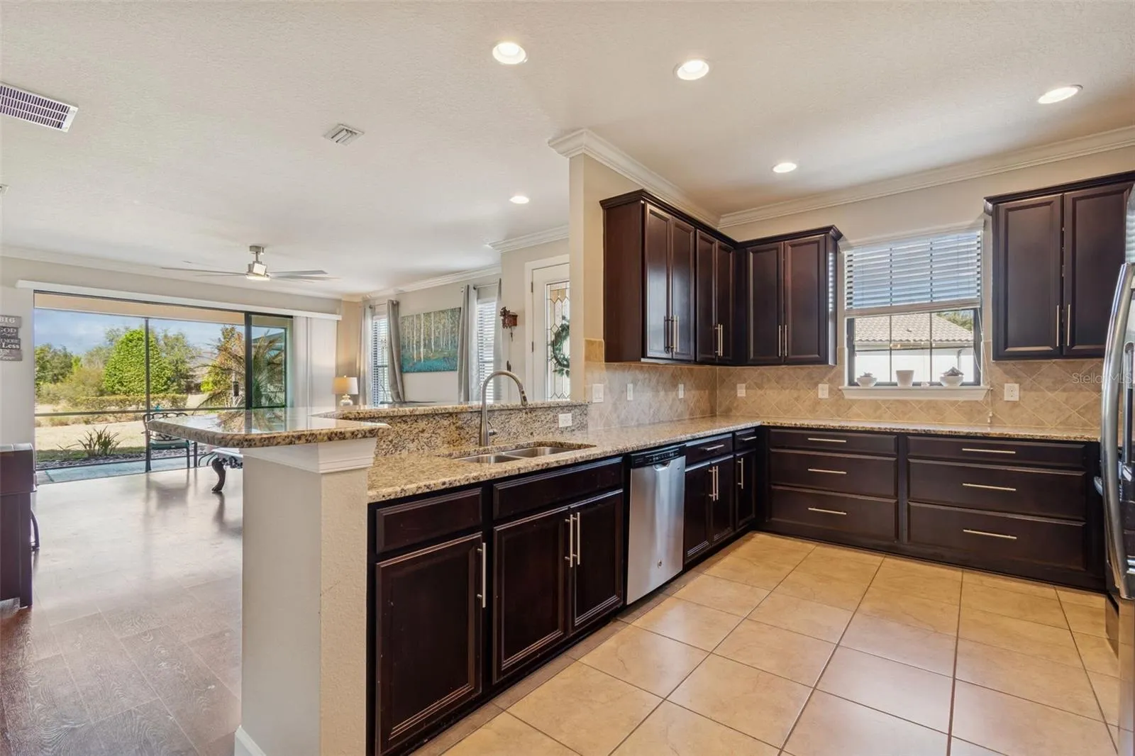 between the kitchen, dining, and living areas, creating an ideal setting for both everyday living and