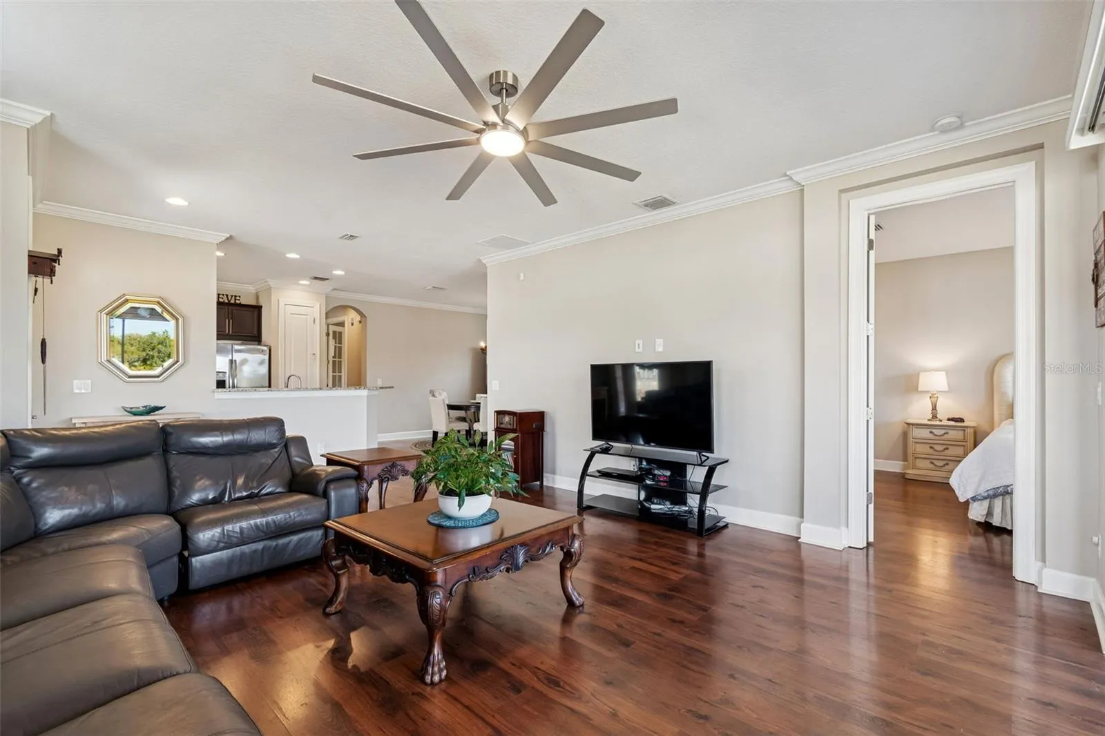 - Ceiling Fans(s), Crown Molding, Open Floorplan, Thermostat, Walk-In Closet(s), Living Room/Dining Room Combo, Kitchen/Family Room Combo, Stone Counters