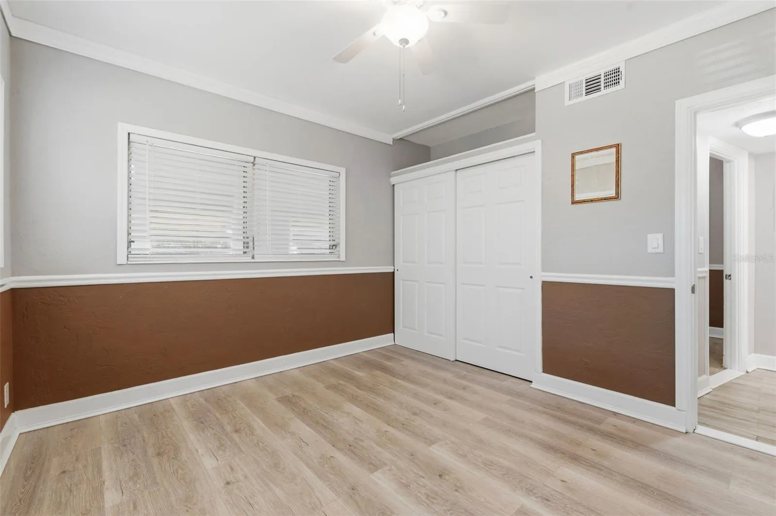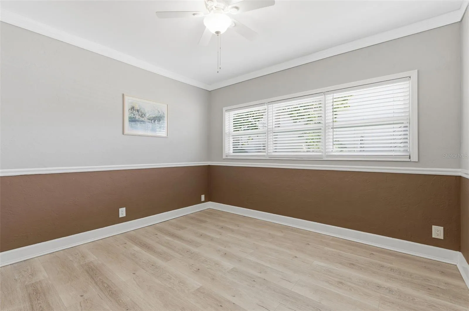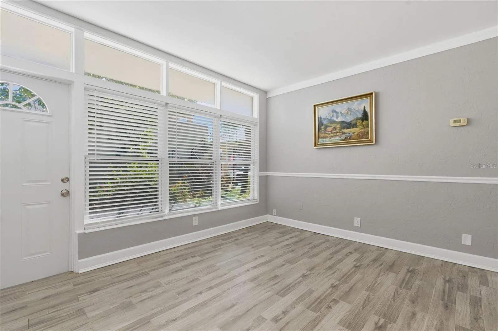 - Ceiling Fans(s), Crown Molding, Thermostat, Living Room/Dining Room Combo, Window Treatments, High Ceilings, Chair Rail