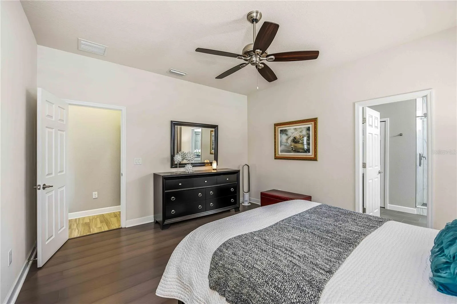 The owner’s suite offers a private sanctuary, complete with generous walk-in closets featuring professional built-in organizers and a fully renovated spa-inspired bathroom (2024) with floor-to-ceiling tile, dual vanities, and luxurious rain shower head. The additional bathrooms have also been tastefully updated with modern designer finishes.