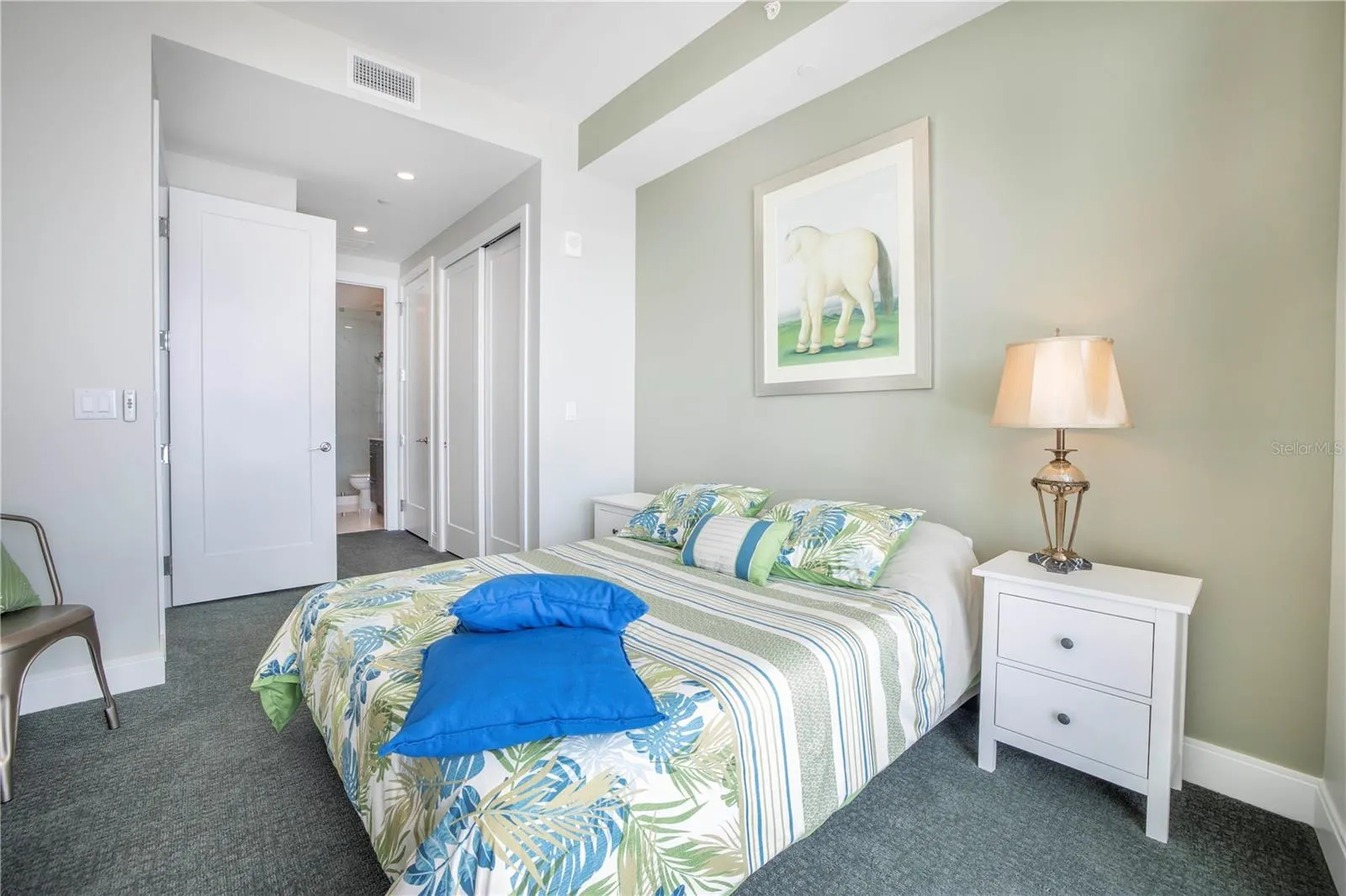 Experience elevated waterfront living in this stunning 18th-floor residence at ONE St. Petersburg. Showcasing uninterrupted, panoramic open-water views, this 2-bedroom, 2.5-bath plus den condo offers 1,522 square feet of luxury in one of downtown’s most coveted addresses. Step inside to a bright, contemporary interior featuring porcelain tile flooring, professional designer paint and elegant lighting upgrades. The gourmet European kitchen is a standout with high-end appliances, sleek contemporary cabinetry, a Valentino stone backsplash, and a brand-new Bosch dishwasher. Lutron electric blinds provide effortless shade control throughout. The spacious primary suite features breathtaking views, a generous walk-in closet, and a spa-inspired bath, while the versatile den offers the perfect space for a home office, media area, or reading lounge. Step outside onto your expansive private balcony and take in postcard-worthy vistas spanning the new St. Pete Pier, sparkling marinas, waterfront parks, and all the way to downtown Tampa.