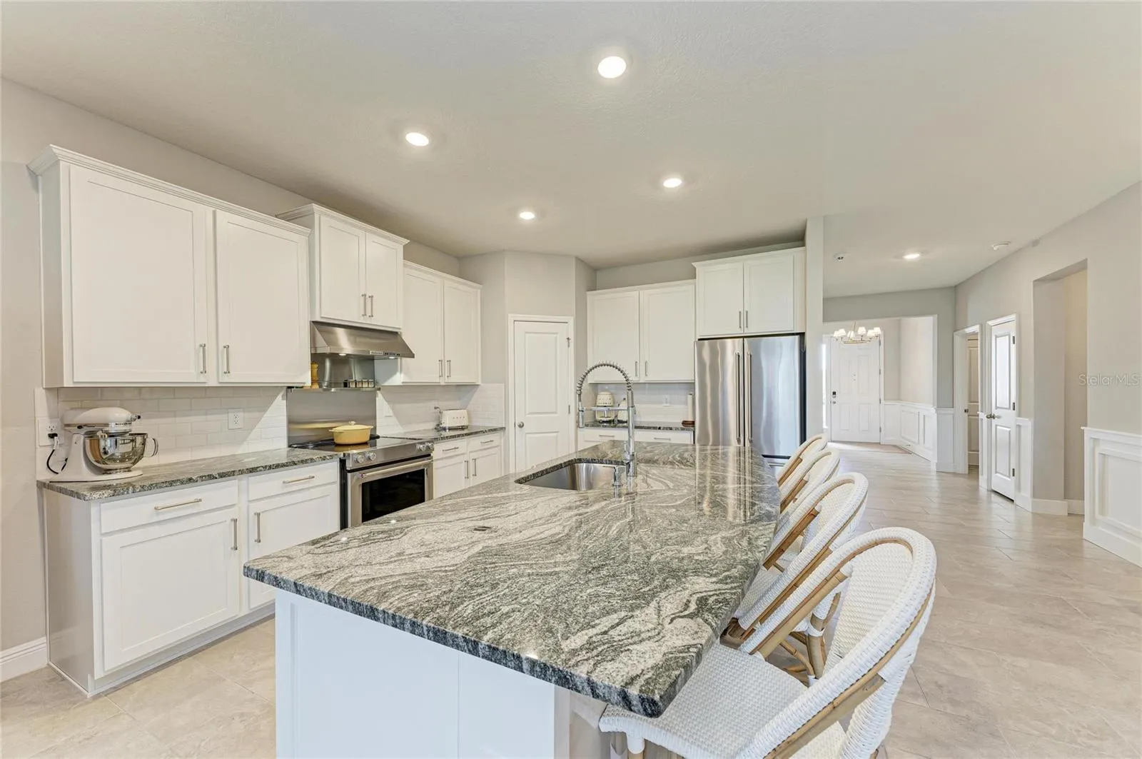 Welcome to your dream home in the highly sought-after village of Solera at Lakewood Ranch! This stunning four-bedroom, two-and-a-half-bathroom residence perfectly captures the essence of Florida living with an ideal blend of style and comfort. As you step inside, you are greeted by an expansive open-concept living room and kitchen area designed for seamless entertaining. The heart of the home features a large kitchen island with a convenient breakfast bar, making it the perfect spot for morning coffee or casual evening gatherings. Adding a touch of warmth and charm, the living room boasts its own fireplace, creating a cozy focal point for the entire main living area.