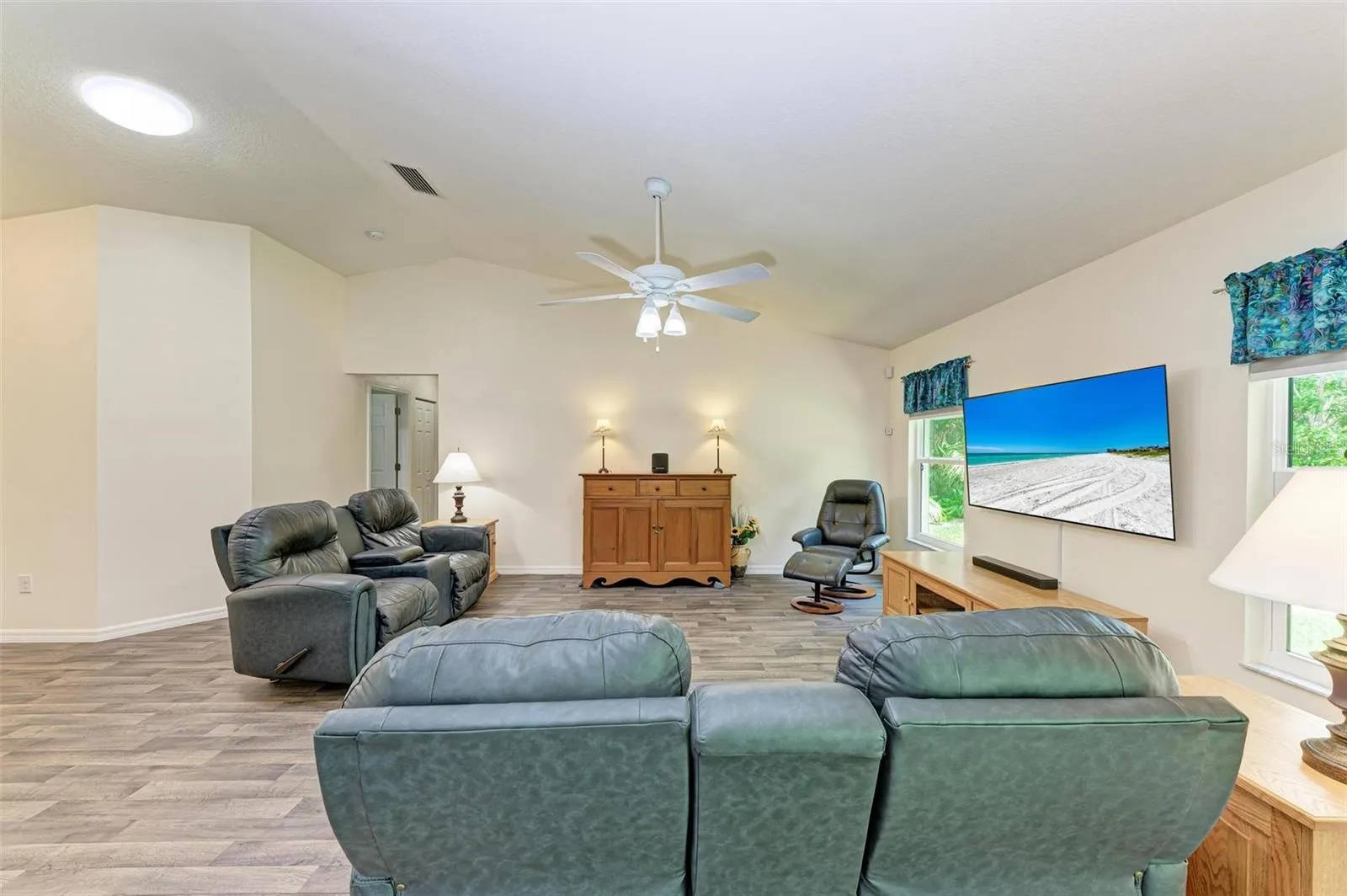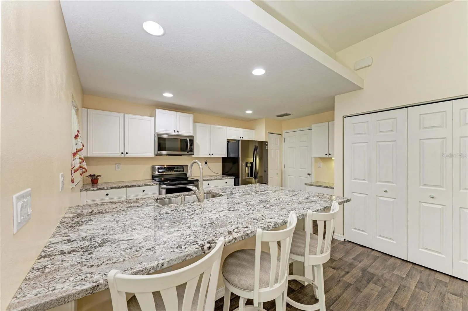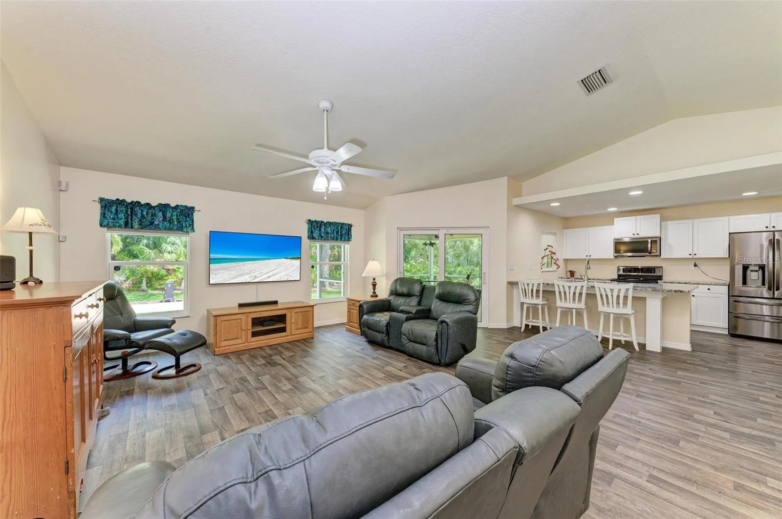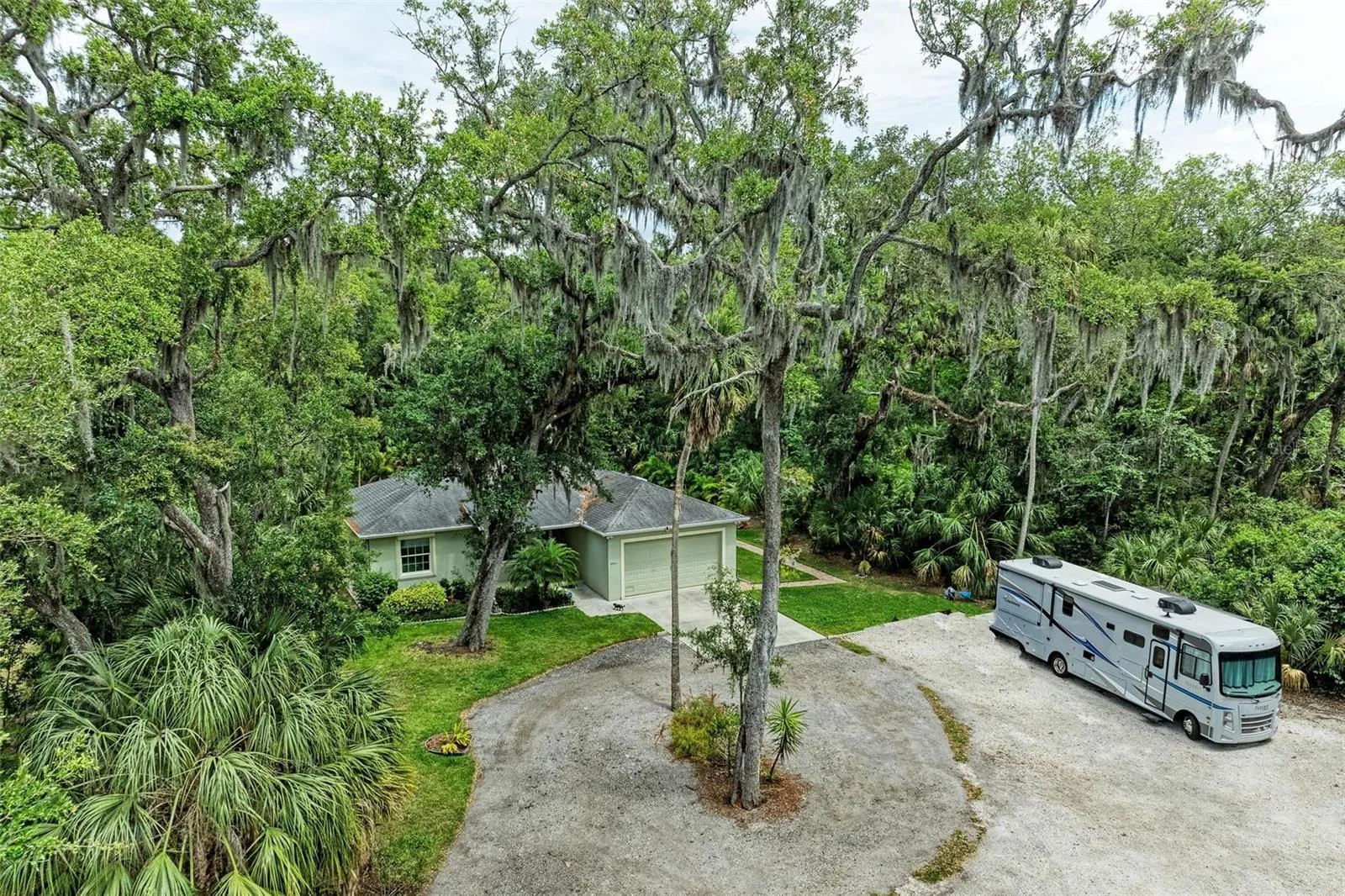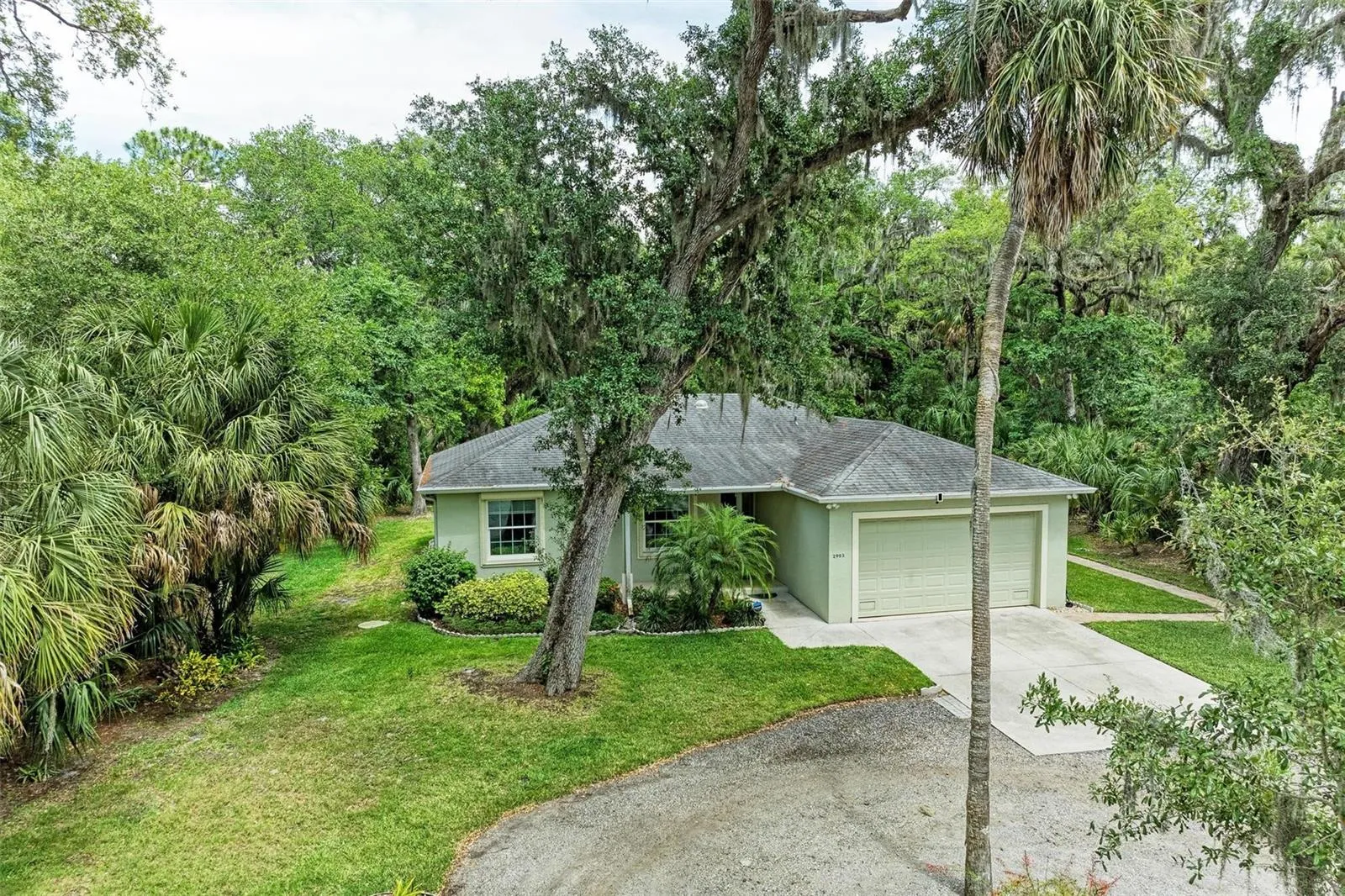 See this completely updated stunning home as you will never want to leave. Live in this model-like home and enjoy all that upscale living has to offer on an acre lot offering peace and privacy. As you drive up the long and winding driveway, be greeted with your electric security gate with remote opener and coded keypad. Take notice of the circular driveway with an abundance of extra space to store a boat, RV with 50-AMP service or company trucks with no community vehicle restrictions. Enter the home and behold open space living with kitchen and living room all flowing together. Built in 2016, this home offers 1,297 square feet, three bedrooms, two baths and two-car garage. An entertainer’s dream with gourmet kitchen outfitted with an abundance of storage space, granite countertops, soft-close cabinetry, stainless steel LG appliances, built-in desk, recessed lighting and a large breakfast bar with eating space or food prep area. The primary bedroom offers an updated en-suite bath with granite countertops, walk-in tile shower and walk-in closet with shelving. You will also find two additional bedrooms and guest bath with granite countertops and a tub to soak away all your worries. This spacious home has it all, including hurricane-rated impact rolldown shutters, living room ceiling skylight, upgraded lighted ceiling fans, pull-down honeycomb window shades and a huge screen-enclosed lanai with epoxy flooring with ceiling fan to enjoy peace and serenity. Step into the oversized backyard for tranquility for family events and room for your pets to run freely. Plenty of space to add a swimming pool in the backyard. You will also find a paved walkway around the side of the home leading to a cozy paved area for grilling and family gatherings. Enjoy peace and quiet, beautiful landscaping with trees, exotic shrubbery and plants surrounding the property. No rental restrictions, no HOA or deed restrictions. Conveniently just a few minutes from Interstate 75/Interstate 275 for easy access to St. Petersburg, Tampa and Sarasota, as well as grocery stores, shopping and restaurants. Schedule your viewing appointment today to see this remarkable home!