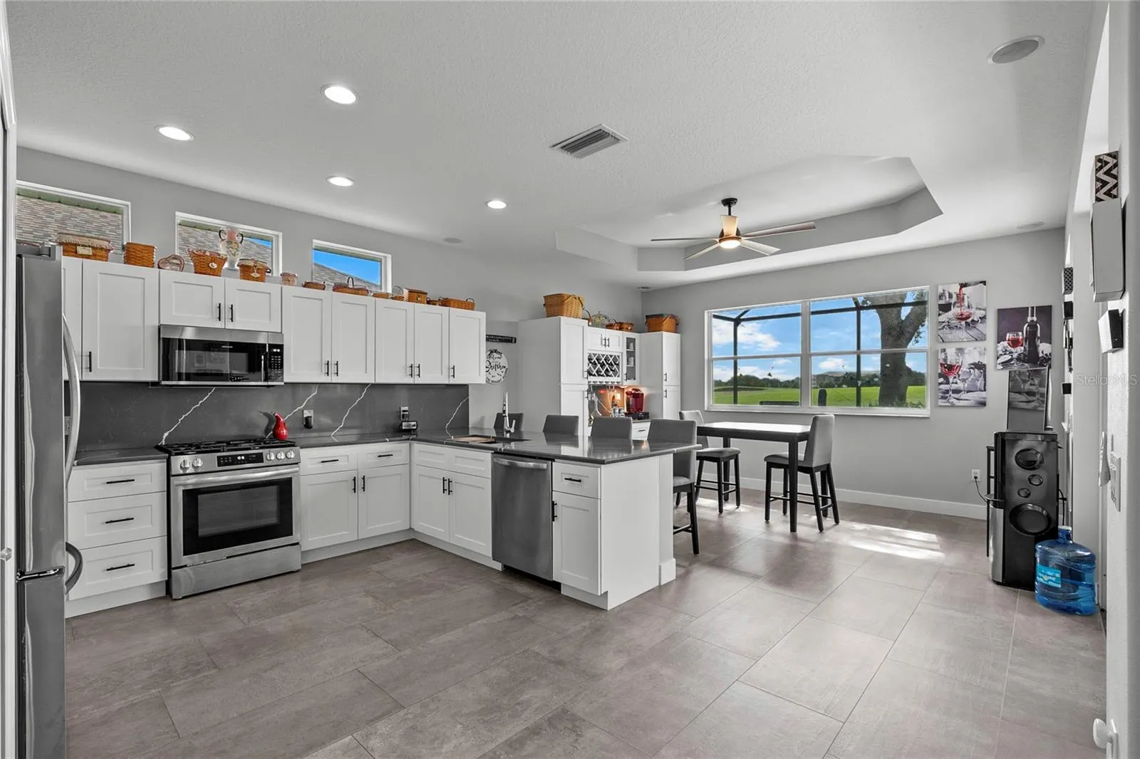 - Ceiling Fans(s), Open Floorplan, Walk-In Closet(s), Eat-in Kitchen, Split Bedroom, Window Treatments, Vaulted Ceiling(s), Solid Wood Cabinets, Solid Surface Counters