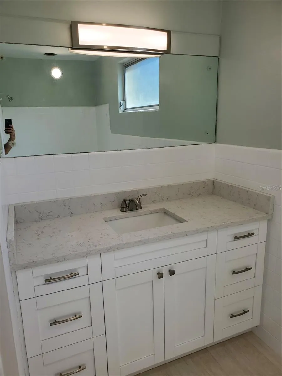 Living near the Gulf coast is finally within reach. Feel the breeze and salty air in your NEWLY RENOVATED Bellaire Bluffs flat. Outfitted with brand new luxury vinyl flooring, kitchen and bathroom cabinets, stainless steel appliances and quartz countertops, this 2 bedroom/1 bathroom corner unit is truly where coastal meets contemporary. Relax in style on your oversized screened porch with new tile flooring. Tons of windows in the kitchen and bedrooms allow for plenty of natural light, your space always feels airy and bright. Other features include two tandem parking spaces (1 covered), a semi-private rear patio area, on-site laundry facilities and outdoor green space. Within walking distance, you’ll find Publix and many restaurants. The Belleaire causeway bridge to some of Florida’s best beaches is also steps, or a quick bike ride away. If you’re looking for an updated space in the perfect location, look no further!